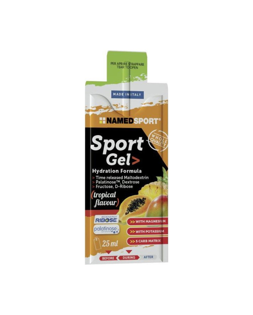 Ειδική σύνθεση φόρμουλας ενυδάτωσης με 300 mg καλίου και 56,25 mg μαγνησίου υποστηρίζει τη μυϊκή λειτουργία και μειώνει τη μυϊκή κόπωση κατά τη διάρκεια μακροχρόνιας προπόνησης Για άμεση και μακροχρόνια πρόσληψη ενέργειας Ιδιαίτερα χρήσιμο σε αθλήματα αντοχής Δεν περιέχει λιπαρά Ενεργειακά τζελ με βάση απλούς και σύνθετους υδατάνθρακες με διαφορετικούς ρυθμούς απελευθέρωσης, με D-ριβόζη και ισομαλτουλόζη Palatinose™ (χαμηλός γλυκαιμικός δείκτης) για συνεχή, σταδιακή παροχή ενέργειας. Διατίθεται σε τέσσερις δροσιστικές γεύσεις. Προσθέτοντας ειδικά συστατικά για την υποστήριξη του οργανισμού σε κάθε στάδιο της προπόνησης. Ιδανικό πριν και κατά τη διάρκεια της προπόνησης. Συστατικά: ισομαλτουλόζη* 32,8%, μαλτοδεξτρίνες 27,47%, νερό, δεξτρόζη 8,32%, φρουκτόζη 3,33%, κιτρικό κάλιο, χλωριούχο μαγνήσιο, D-ριβόζη 0,83%, οξυντικά: μηλικό οξύ, φωσφορικό οξύ, κιτρικό οξύ- σορβικό κάλιο. * Η ισομαλτουλόζη είναι πηγή γλυκόζης και φρουκτόζης. Οδηγίες χρήσης: Χρησιμοποιήστε το τζελ πριν ή κατά τη διάρκεια της σωματικής δραστηριότητας. Συνιστώμενη ημερήσια δόση: λάβετε το πολύ 2 τζελ την ημέρα. Προειδοποίηση: Τα συμπληρώματα διατροφής δεν πρέπει να χρησιμοποιούνται ως υποκατάστατο μιας ποικίλης διατροφής. Η χρήση κατά τη διάρκεια της εγκυμοσύνης δεν συνιστάται. Μην υπερβαίνετε τη συνιστώμενη ημερήσια δόση. Φυλάξτε το μακριά από μικρά παιδιά. Φυλάσσετε σε δροσερό και ξηρό μέρος.
