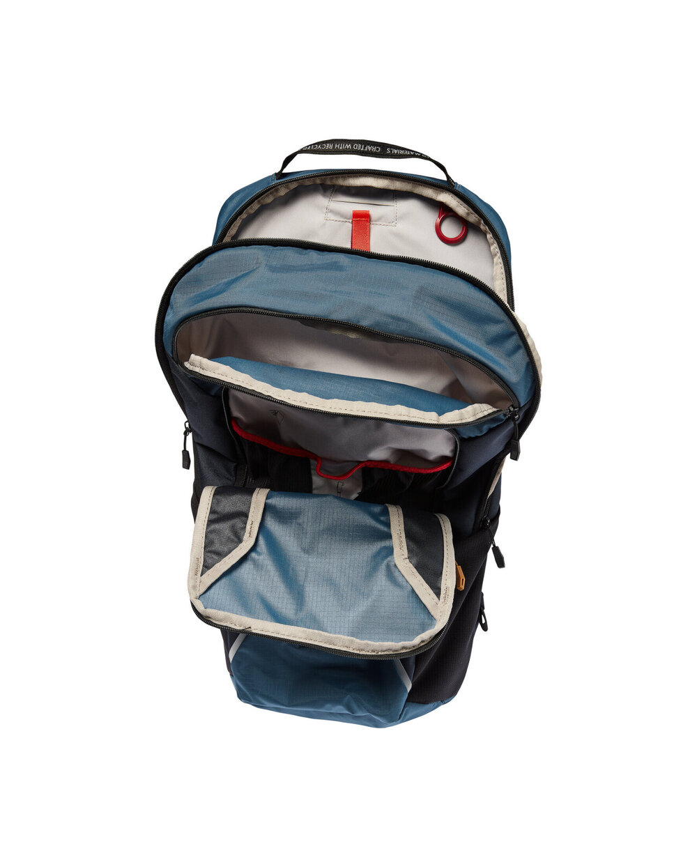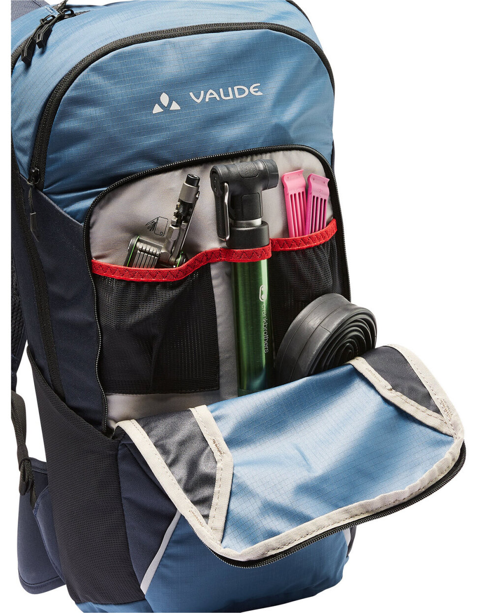 - Ξεχωριστό διαμέρισμα στην κορυφή, διαμέρισμα εργαλείων με τσέπες δικτύου, τσέπες πλευρικών ματιών, οσφυϊκή τσέπη
