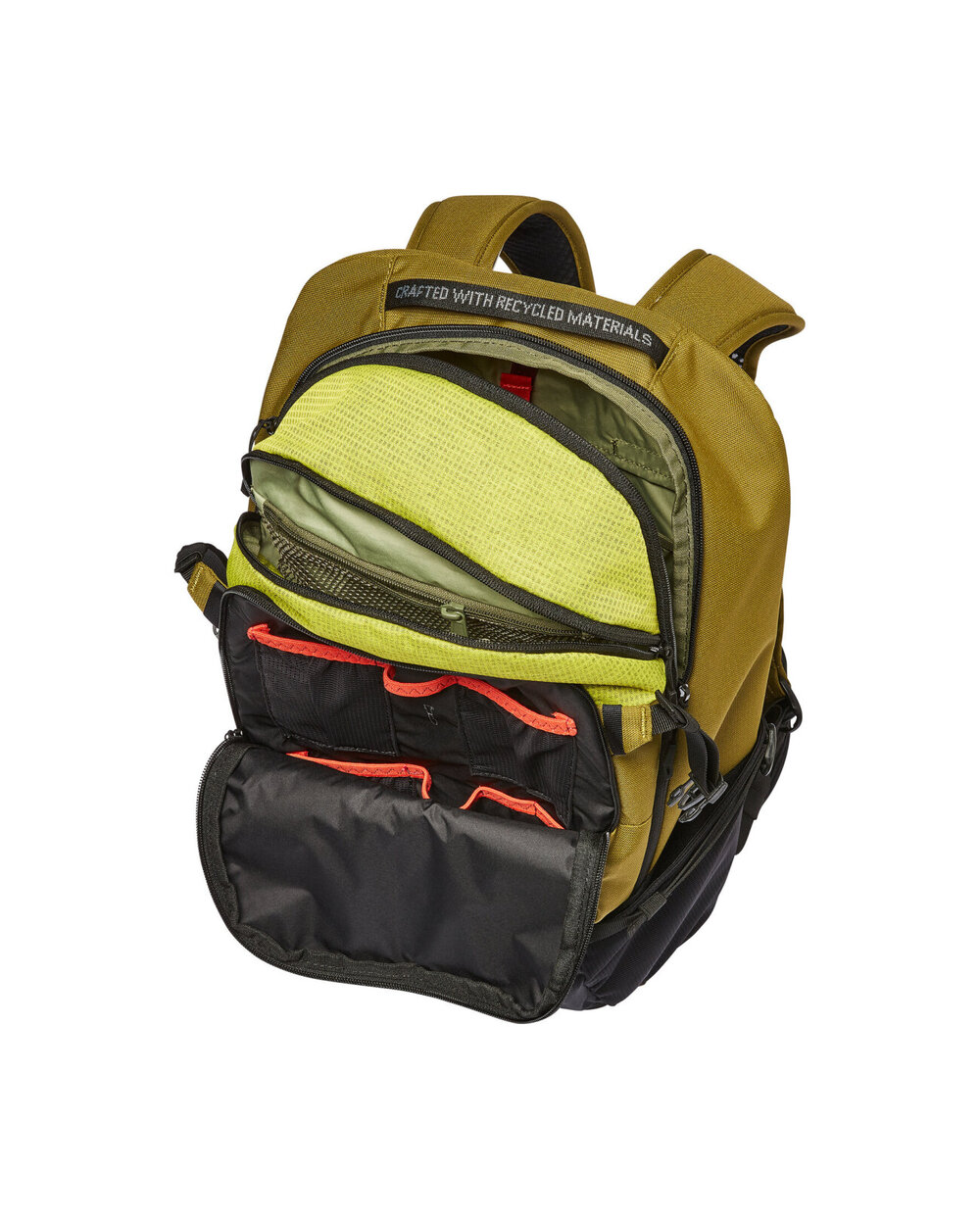 - Μια άνετη οσφυϊκή ζώνη τραβά το κέντρο βάρους του σακιδίου προς την πλάτη και, μαζί με τους ιμάντες ώμου Ergoshape, εξασφαλίζει ένα τέλειο προσκόλληση με τη βέλτιστη ελευθερία της κίνησης ποδηλάτων