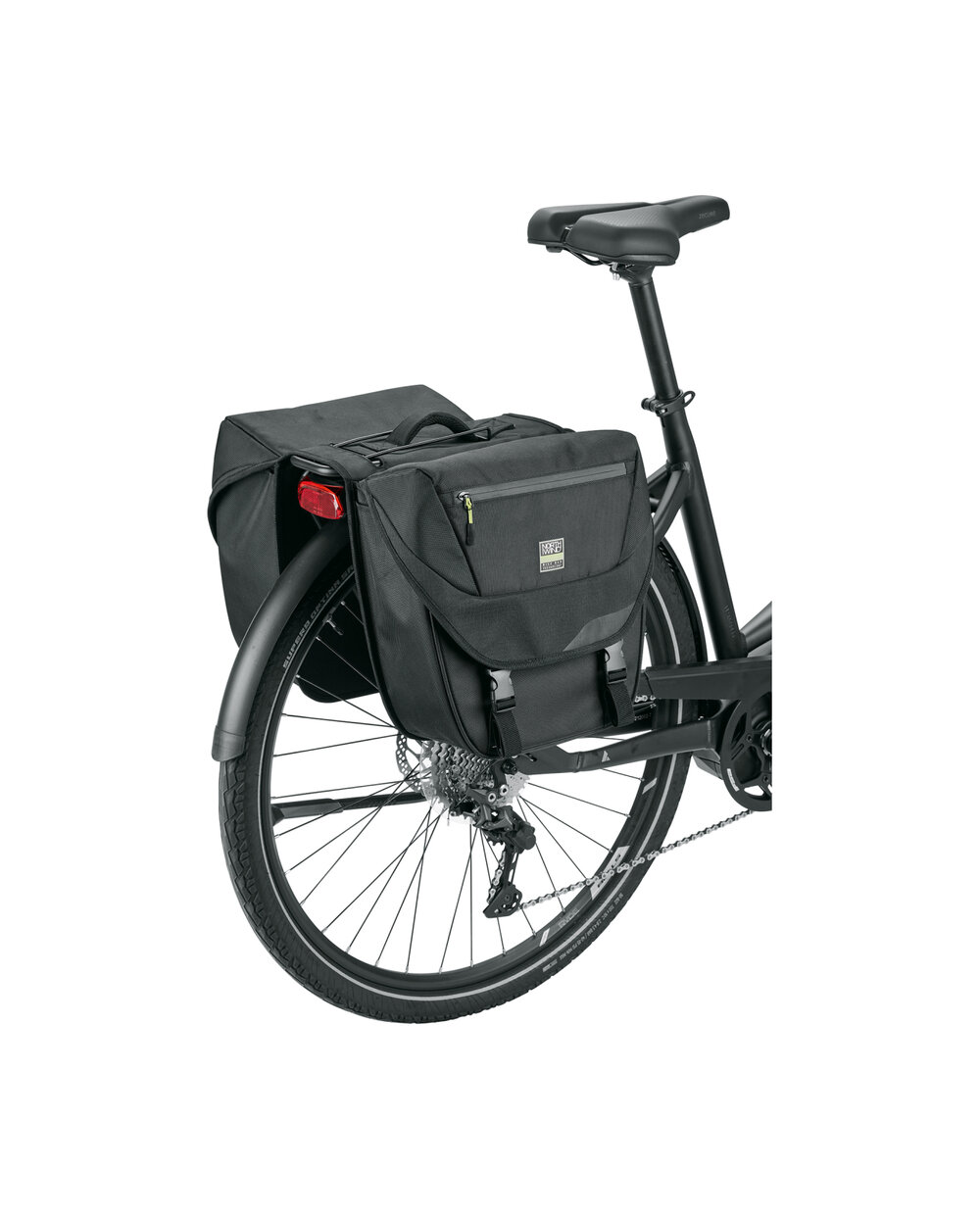 Διπλή τσάντα με άφθονο αποθηκευτικό χώρο. Χάρη στο μεγάλο άνοιγμα με αγκράφα, μπορείτε εύκολα να το φορτώσετε και να το ξεφορτώσετε και το αδιάβροχο θα εξασφαλίσει στεγνό περιεχόμενο σε κάθε καιρό. Οι εξωτερικές τσέπες με φερμουάρ και στις δύο πλευρές παρέχουν γρήγορη πρόσβαση στο τηλέφωνο, τα κλειδιά ή το πορτοφόλι σας.Κατάλληλη για όλες τις εταιρείες μεταφοράς με πτερύγιο με ελατήριο Η τσάντα ταιριάζει σε όλες τις θήκες αποσκευών με πτερύγιο με ελατήριο - απλώς ανοίξτε το πτερύγιο, βάλτε την τσάντα και κλείστε την ξανά. Η πρόσθετη στερέωση με velcro κρατά τη σακούλα σταθερά στη θέση της. Το μοντέλο PANNIER CLASSIC DOUBLE BAG είναι ελαφρώς στρογγυλεμένο μπροστά για να μην παρεμβαίνει στο πεντάλ. Η επενδυμένη λαβή διευκολύνει τη μεταφορά από το ποδήλατο.Χαρακτηριστικά: • Ταιριάζει σε όλους τους φορείς με πτερύγιο με ελατήριο • Ελαφρώς στρογγυλεμένο σχήμα για άνετο πετάλι • Επενδυμένη λαβή μεταφοράς • Ανακλαστικά στοιχεία για καλύτερη ορατότητα Ενσωματωμένο κάλυμμα