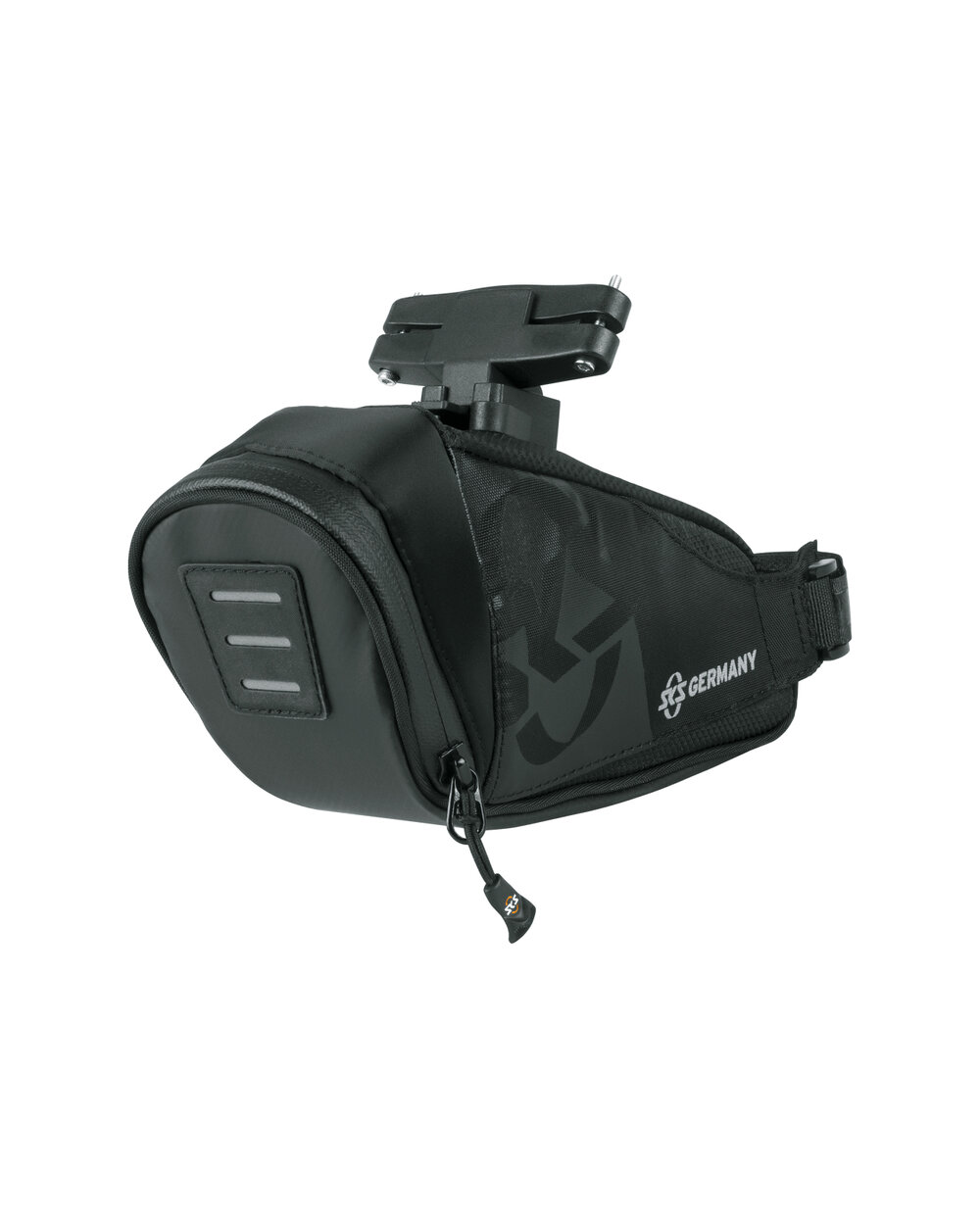 Μικρό αλλά έξυπνο. Αυτή είναι η λειτουργική, αεροδυναμική θήκη σέλας SKS Racer Click 800 με κομψό σχεδιασμό. Χάρη στο σχήμα της, είναι κατάλληλη και για ποδήλατα δρόμου. Η αδιάβροχη ελαστικοποιημένη επιφάνεια είναι πολύ ανθεκτική και για μεγαλύτερη ασφάλεια είναι εξοπλισμένη με ανακλαστικά στοιχεία. Χρώμα: μαύρο Διαστάσεις: 190 x 75 x 100 mm Χωρητικότητα: 0,8 l Υλικό: νάιλον
