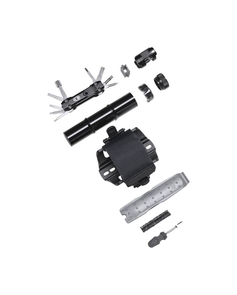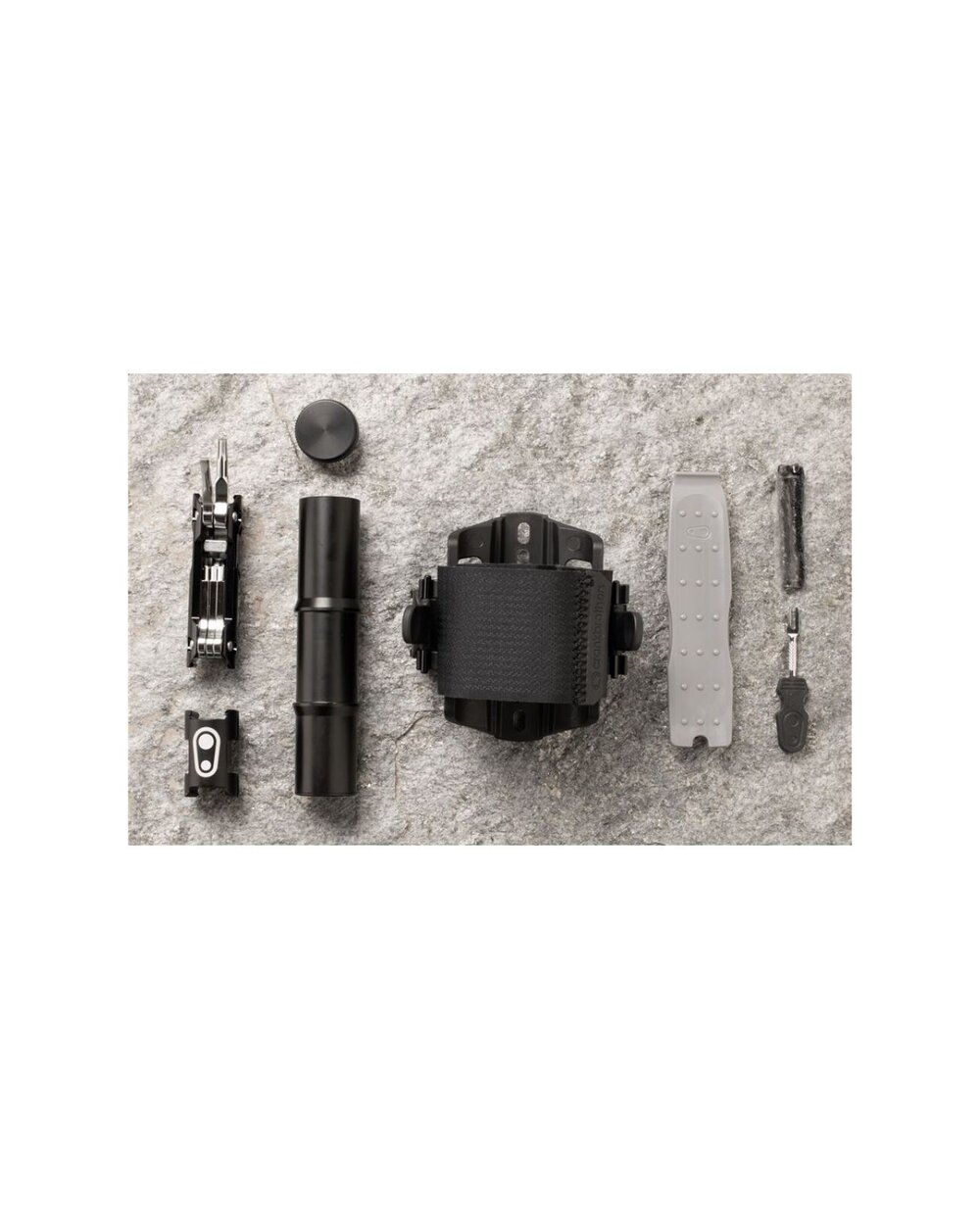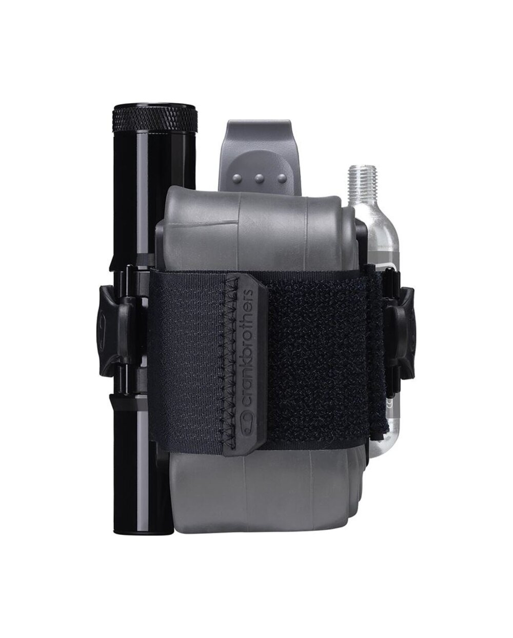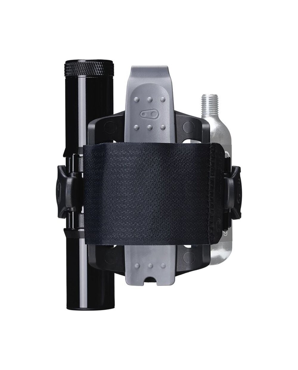 Στήριγμα για εφεδρικό εσωτερικό σωλήνα ή άλλο εξοπλισμό με λουράκι Velcro. Συναρμολόγηση αντί για καλάθι. Ένα μεγάλο πολυλειτουργικό εργαλείο βρήκε μια θέση στον πλευρικό αποθηκευτικό χώρο και στην άλλη πλευρά του καλαθιού μπορείτε να συνδέσετε έναν κύλινδρο CO2 ή μια μίνι αντλία.