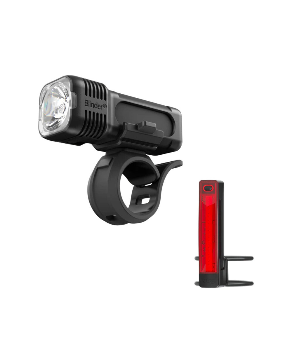 Το Knog Blinder 400 & Plus είναι ένα απόλυτα ισορροπημένο σύνολο φώτων που συνδυάζει ισχυρό εμπρός φωτισμό με ένα έξυπνο και ευέλικτο πίσω φως. Το μπροστινό φως Blinder 400 είναι συμπαγές αλλά ανθεκτικό - προσφέρει 400 lumens και μια συγκεντρωμένη δέσμη 18° που διαπερνά τέλεια το σκοτάδι και παρέχει θερμοκρασία χρώματος φωτός ημέρας, μειώνοντας την κούραση των ματιών κατά τις νυχτερινές βόλτες.Himple επαναφορτιζόμενη μπαταρία. 1850 mAh, που εγγυάται αξιόπιστη απόδοση ακόμα και κατά την παρατεταμένη χρήση. Χάρη στο απλό σύστημα στερέωσης, μπορείτε να το φορέσετε ή να το αφαιρέσετε μέσα σε λίγα δευτερόλεπτα χωρίς εργαλεία.Το πίσω φως Knog Plus είναι ένα από τα πιο ευέλικτα στην αγορά - μπορείτε να το προσαρτήσετε στη βάση του καθίσματος ή, χάρη στο ενσωματωμένο κλιπ, να το προσαρτήσετε ακόμη και ένα σακίδιο στην πλάτη. Ανεξάρτητα από το πώς οδηγείτε, εξασφαλίζει τέλεια ορατότητα από πίσω.Και τα δύο φώτα προσφέρουν πολλαπλές λειτουργίες φωτισμού (σταθερά και αναβοσβήνουν) και φόρτιση USB χωρίς την ανάγκη καλωδίου – απλώς συνδέστε τα απευθείας στη θύρα USB.Κύρια πλεονεκτήματα:Μπροστινό φως.