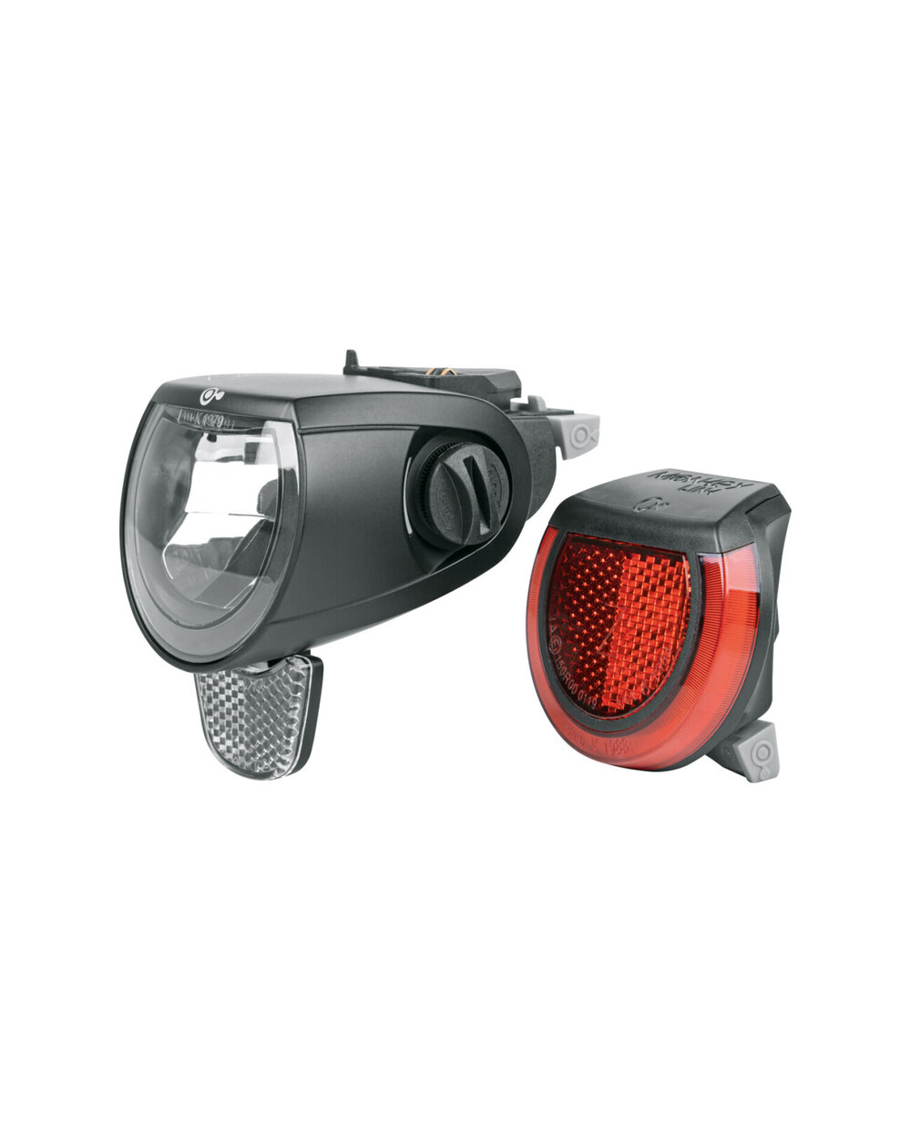 Το μπροστινό φως είναι εξοπλισμένο με ανακλαστήρα K με φώτα ημέρας και λειτουργία μεγάλης σκάλας. Το φως είναι ρυθμιζόμενο στη γωνία και προσφέρει ισχύ 150 LUX (110 LUX στη μεσαία σκάλα), που εξασφαλίζει εξαιρετική ορατότητα. Το πίσω φως είναι εξοπλισμένο με φως φρένων για αυξημένη ασφάλεια κατά την οδήγηση. Επιπλέον, το σύστημα επιτρέπει τη γρήγορη φόρτιση smartphone μέσω της θύρας USB-C με ισχύ 12 W. Αυτό το σύστημα φωτισμού είναι προεγκατεστημένο αποκλειστικά σε ηλεκτρονικά ποδήλατα εξοπλισμένα με βάσεις MonkeyLink, γεγονός που διευκολύνει σημαντικά τη συναρμολόγηση και τη χρήση του.Δυνατότητες: