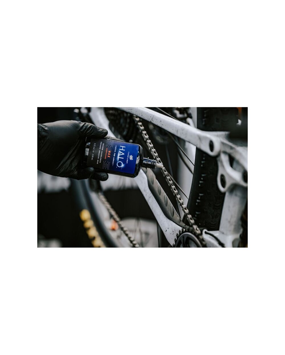 Το HALO Wax-Film είναι το κορυφαίο λιπαντικό με βάση το κερί της Finish Line με απαράμιλλη απόδοση με τη μορφή μεγάλης καθαριότητας της αλυσίδας και μεγάλης χιλιομετρικής διάρκειας μεταξύ των εφαρμογών λιπαντικού. Το λιπαντικό αποτελείται από μικρά σωματίδια βολφραμίου, εξαιρετικά εκλεπτυσμένη παραφίνη και κεραμική αντικολλητική τεχνολογία. Αυτό κάνει την αλυσίδα πολύ αθόρυβη, μπορεί να θεραπεύσει μικρές ζημιές στα γρανάζια και έχει χαμηλή αντίσταση στην τριβή. Μπείτε σε μια νέα διάσταση της συντήρησης της αλυσίδας!