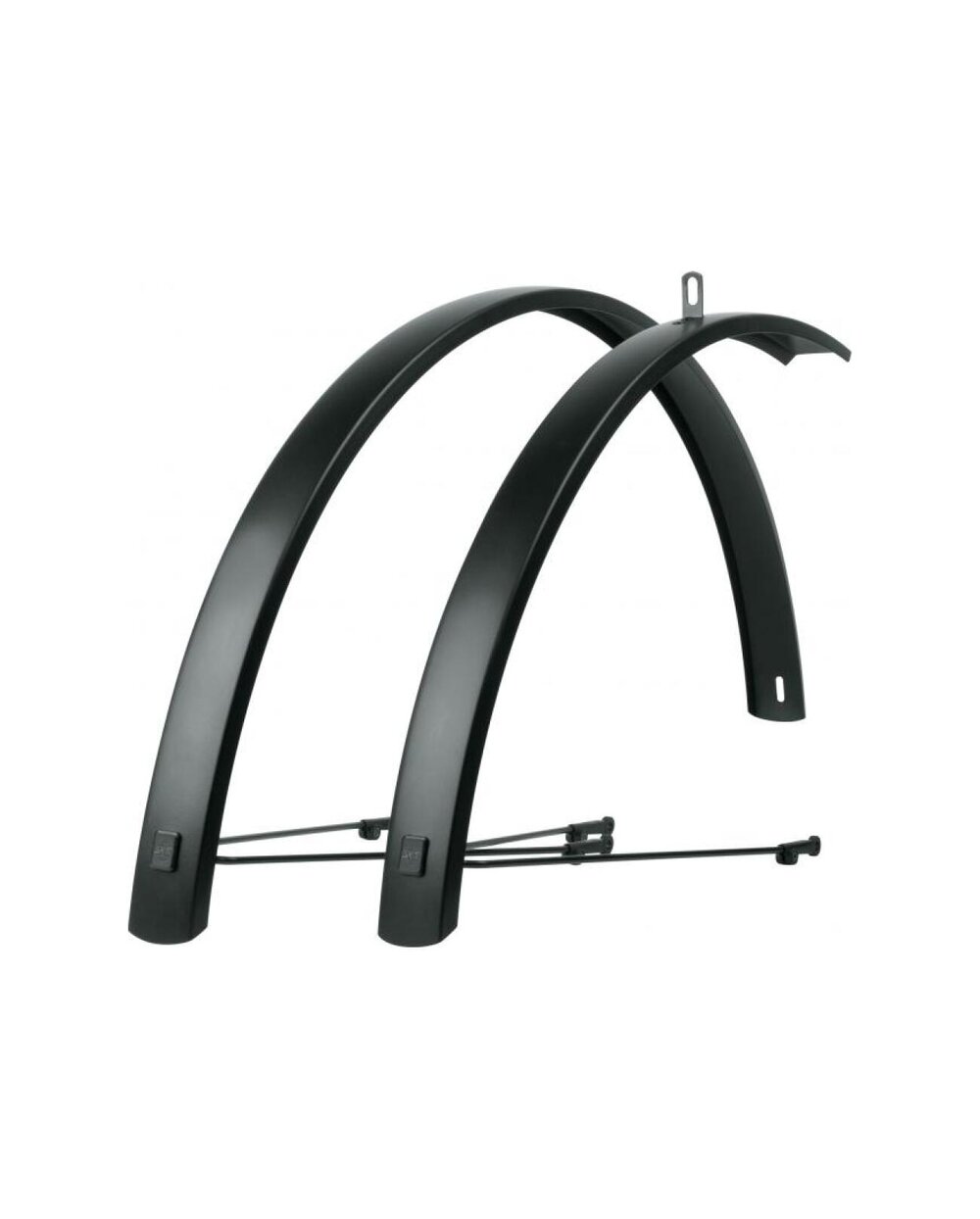 Τα κομψά φτερά αλουμινίου SKS Edge AL 56 είναι ιδανική επιλογή για ποδήλατα cross-country και trekking με διάμετρο τροχού 28 ίντσες. Χάρη στον μινιμαλιστικό σχεδιασμό και το μαύρο ματ φινίρισμά τους, ενσωματώνονται σχεδόν αόρατα στο πλαίσιο του ποδηλάτου, βελτιώνοντας τη συνολική του εμφάνιση. Οι λασπωτήρες παρέχουν εξαιρετική προστασία από το πιτσίλισμα του νερού και της βρωμιάς, ενώ η στιβαρή κατασκευή τους από αλουμίνιο εξασφαλίζει υψηλή σταθερότητα ακόμη και με κούμπωμα τριών σημείων. Το μπροστινό φτερό έχει μήκος 740 mm, το πίσω 1200 mm και είναι συμβατό με ελαστικά με μέγιστο πλάτος 50 mm. Το συνολικό βάρος του σετ είναι 568 g. Αυτά τα φτερά κατασκευάζονται στη Γερμανία, γεγονός που εγγυάται την υψηλή ποιότητα και την ακριβή επεξεργασία τους. Μέγ. πλάτος κελύφους - 42mm Βάρος - 543g Μήκος μπροστινής πλευράς bl. - 740mm Μήκος πίσω bl. - 1200 mm Χρώμα - Μαύρο ματ Υλικό - Αλουμίνιο