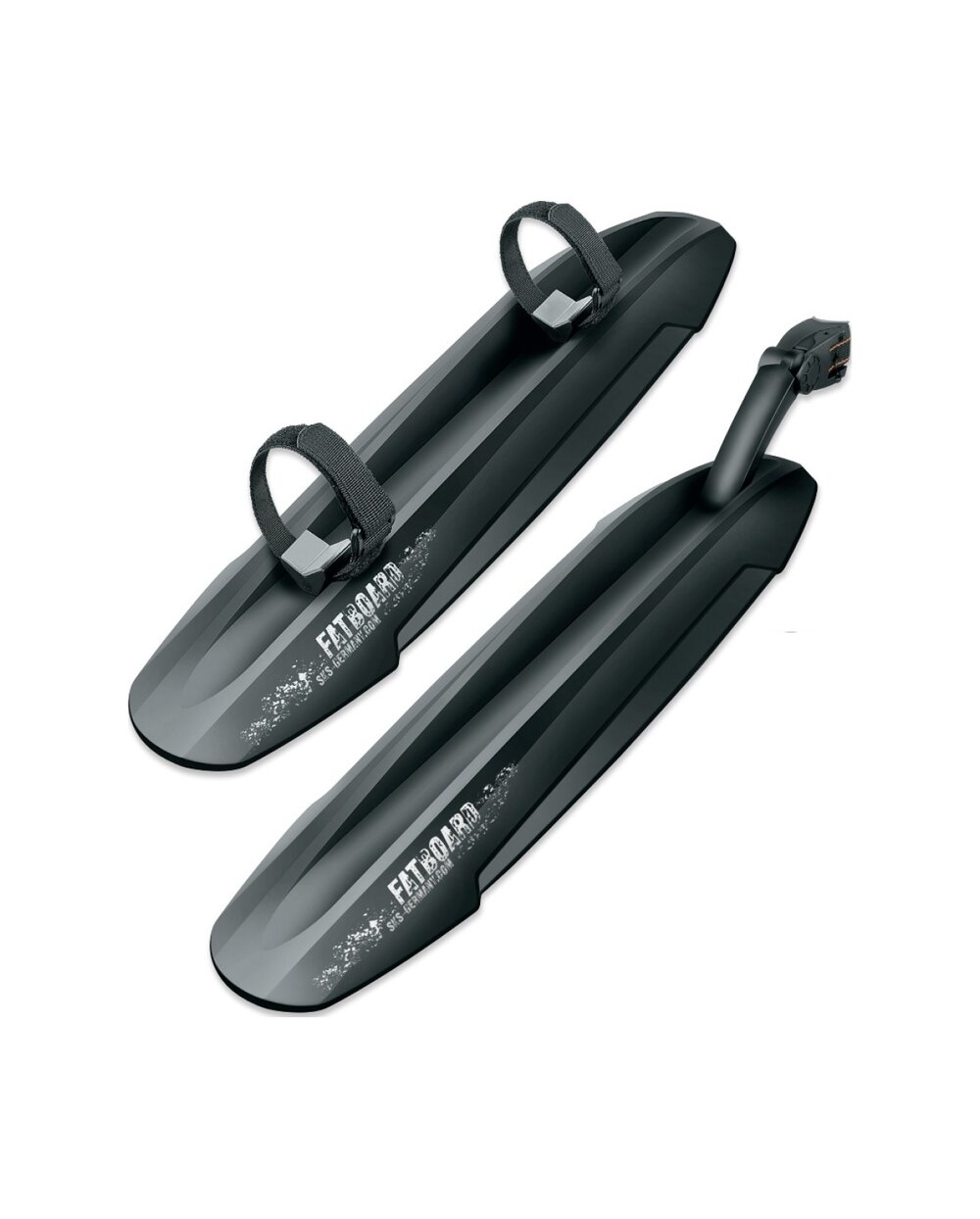 Το σετ φτερού SKS FATBOARD έχει σχεδιαστεί ειδικά για χοντρά ποδήλατα, παρέχοντας αποτελεσματική προστασία από λάσπη και βρωμιά για ελαστικά πλάτους έως 141 mm. Ο μπροστινός λασπωτήρας προσαρμόζεται εύκολα στον κάτω σωλήνα χρησιμοποιώντας ελαστικά υψηλής ποιότητας, ενώ ο πίσω λασπωτήρας μπορεί να τοποθετηθεί στο στύλο της σέλας ή στον κάτω σωλήνα σε δευτερόλεπτα χρησιμοποιώντας το σύστημα ταχείας απελευθέρωσης SKS. Χάρη στον βραχίονα διπλής άρθρωσης, ο πίσω λασπωτήρας μπορεί να προσαρμοστεί με ακρίβεια στη γεωμετρία του ποδηλάτου σας. Μήκος μπροστινού λασπωτήρα: 480 mm Μήκος πίσω λασπωτήρα: 480 mm