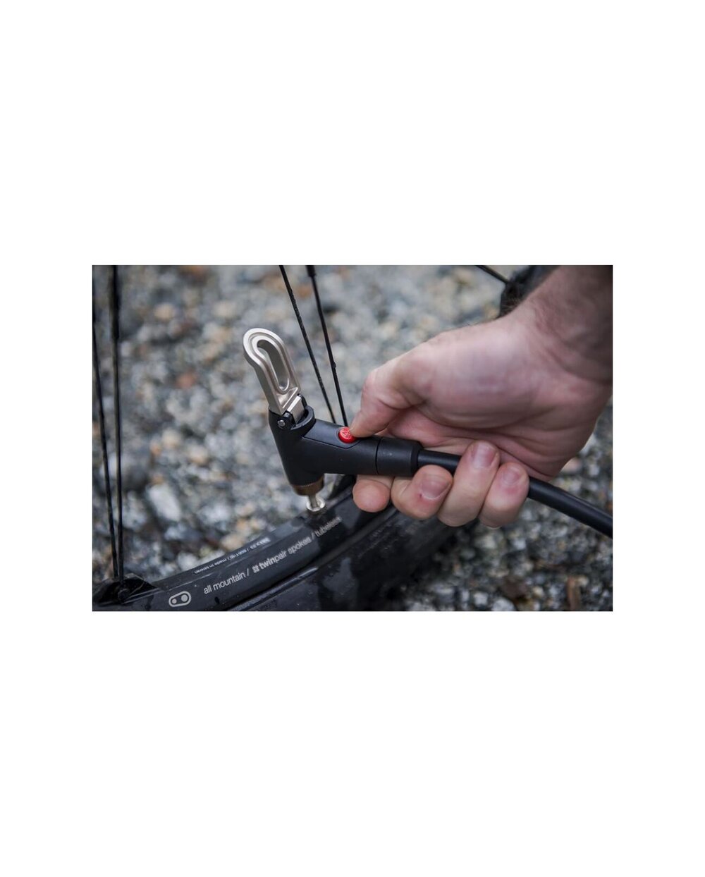 Αντλία συνεργείου με θάλαμο για φόρτωση ελαστικών χωρίς σωλήνες. Φουσκώνετε το θάλαμο με αέρα, αλλάζετε το μοχλό και όλος ο αέρας σφραγίζει το περίβλημα ταυτόχρονα. Φυσικά, η Chamber Tubeless λειτουργεί και ως τυπική αντλία συνεργείου.