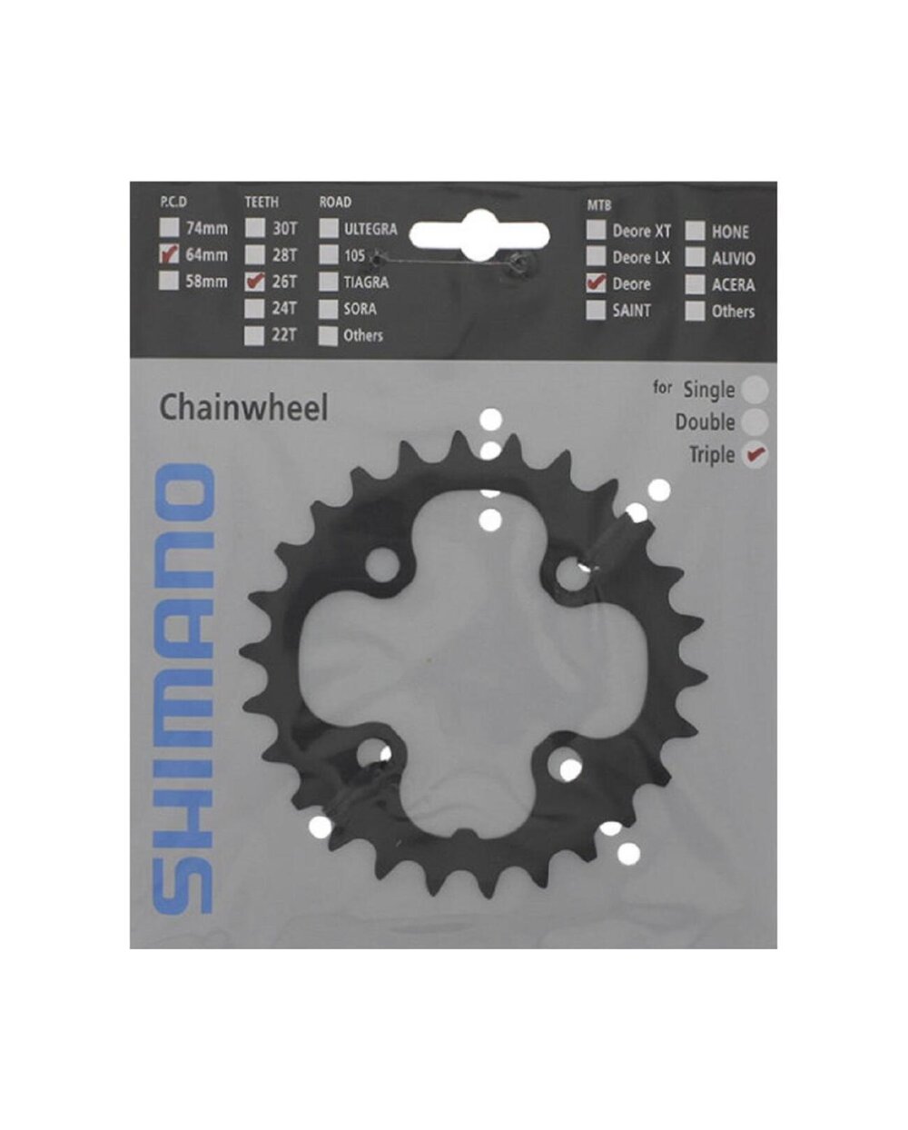 Τύπος: MTB, Συνολικό βάρος συσκευασίας: 80g, Αριθμός δοντιών στον επιλογέα: 26, επιλογέας: 9 ταχυτήτων, Για συνδυασμούς επιλογέων: 48/36/26, Αριθμός ταχυτήτων: 3x9, Απόσταση επιλογέων: 64mm, μαύρο