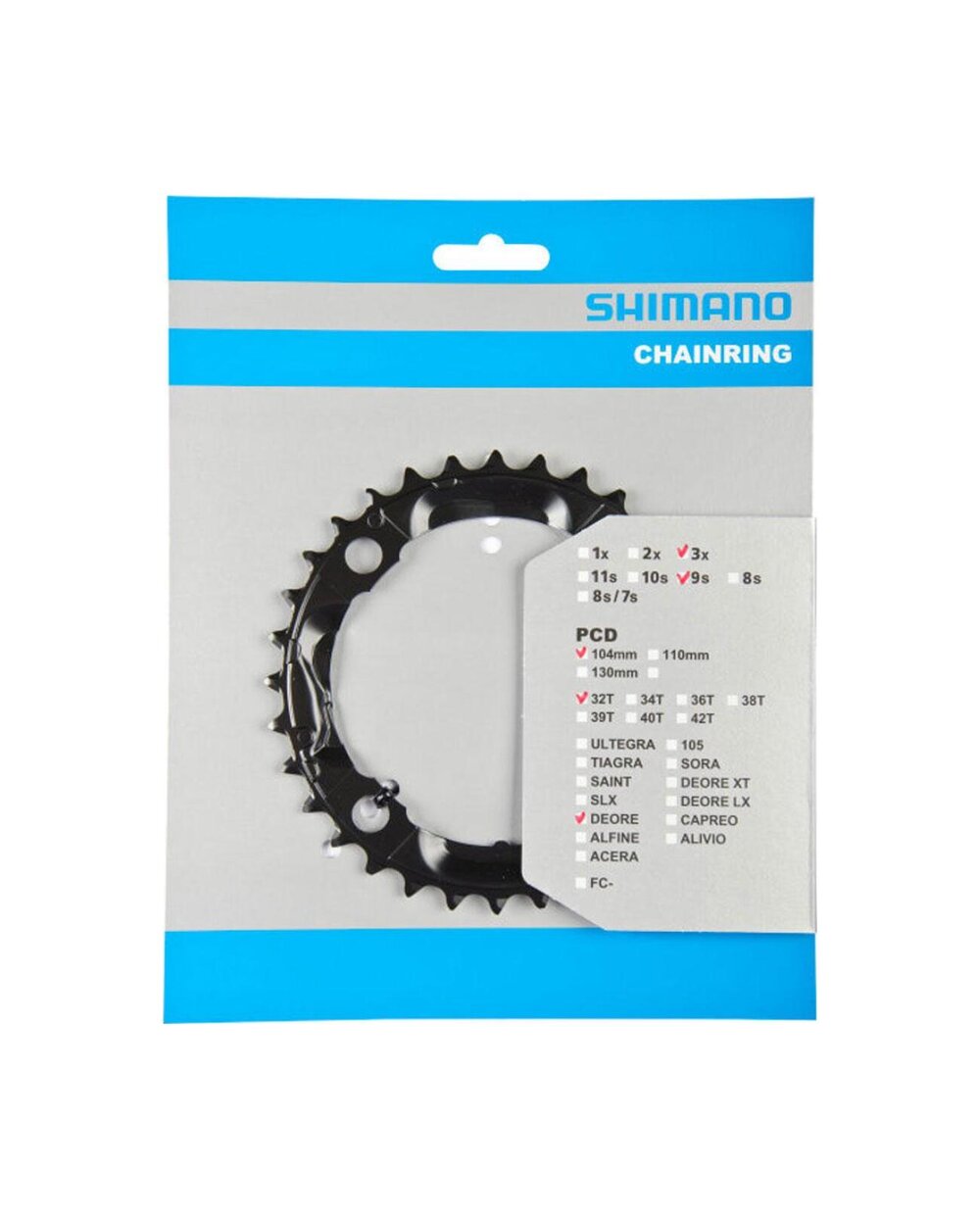 Τύπος: MTB, Συνολικό βάρος συσκευασίας: 121g, Αριθμός δοντιών στον επιλογέα: 32, Διακόπτες: 9 ταχυτήτων, Για συνδυασμούς επιλογέων: 44/32/22, Αριθμός ταχυτήτων: 3x9, Απόσταση επιλογέων: 104mm, μαύρο