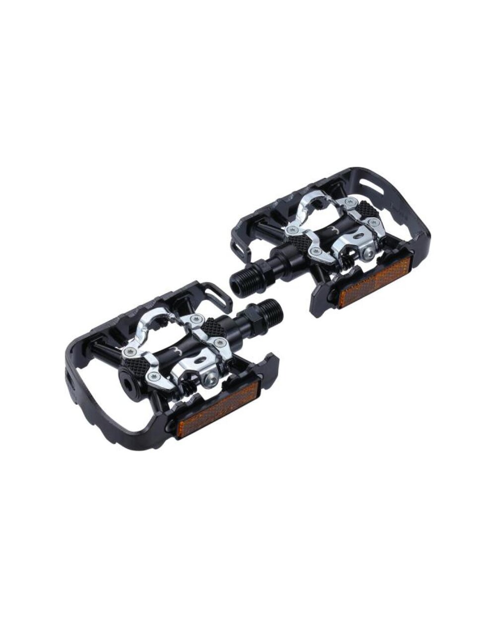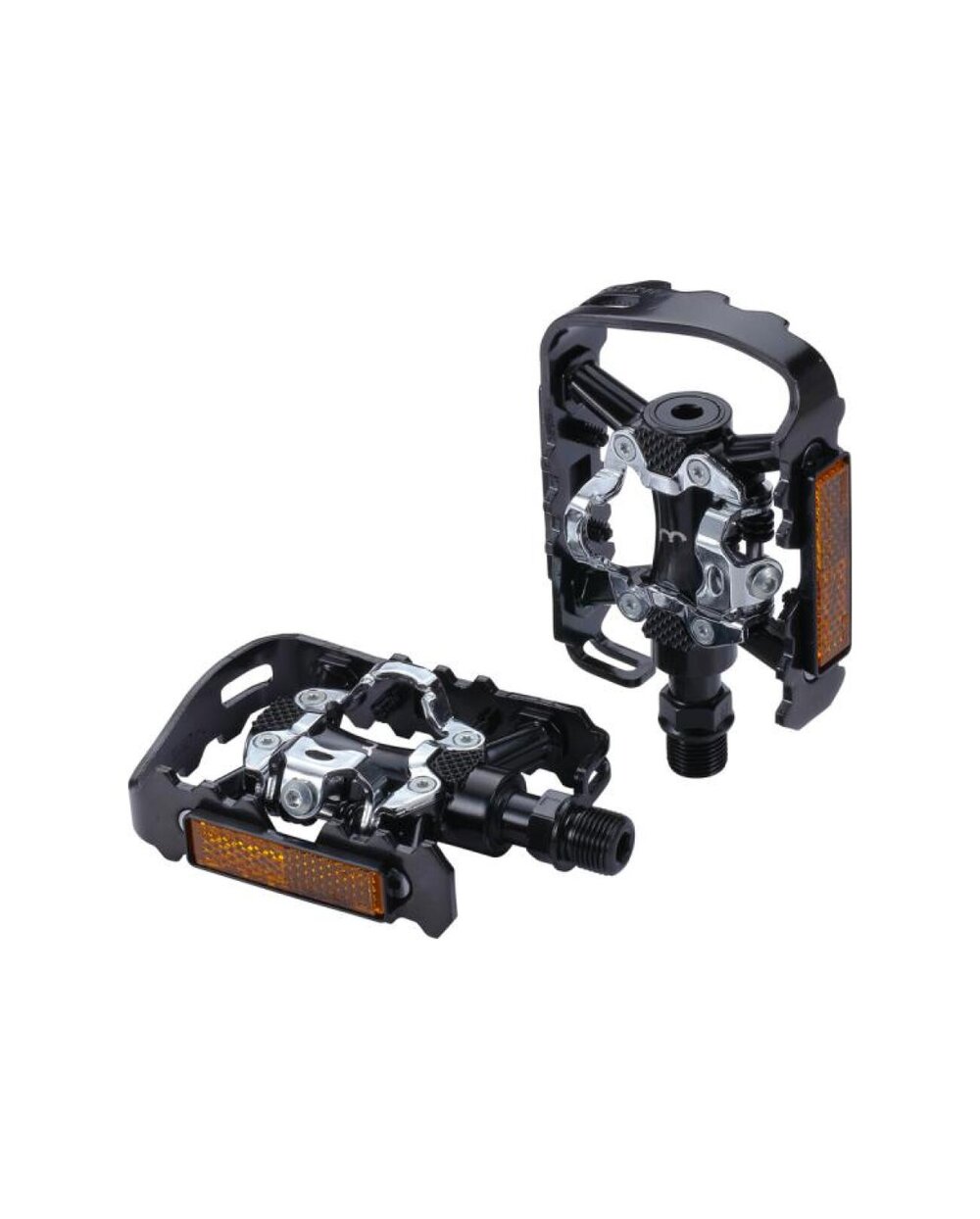 Πεντάλ διπλής λειτουργίας. Η μία πλευρά είναι συμβατή με SPD και η άλλη με αντιολισθητικές πλάκες για κλασικά παπούτσια.Ρυθμιζόμενη δύναμη σύσφιξης.Εύκολος στη λειτουργία μηχανισμός σύσφιξης.Εξαιρετικά ανθεκτικό πέλμα CrMo. Ενθυλακωμένα βιομηχανικά ρουλεμάν.Εγκατάσταση με κλειδί πιρουνιού 15mm ή κλειδί Allen 6mmΠαροχή με BBB Click& stops