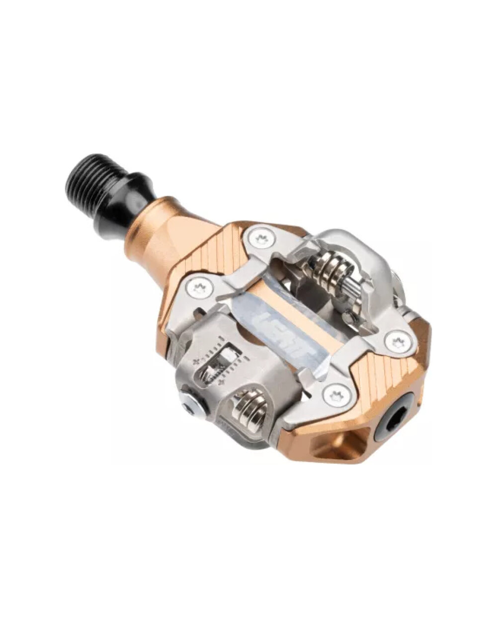 Το φινίρισμα ανοδιωμένου καραμπίνα συμβάλλει στη μείωση της κόπωσης και μειώνει τον κίνδυνο εξάπλωσης ρωγμών Μέγιστη ανθεκτικότητα με διπλές σφραγίδες Leatt και σύστημα τριπλού εδράνου Ένα σύστημα τοποθέτησης διπλής κλιμάκωσης Θετική καλωδίωση και ανατροφοδότηση Δέσμευση από ανοξείδωτο χάλυβα με μειωμένη τριβή επικάλυψης Ρυθμιζόμενη τάση ελατηρίου για συνεπή είσοδο και έξοδο 5 βαθμοί ελεύθερης κίνησης Το σφυρήλατο και το CNC καλλιεργήθηκαν από το χάλυβα Chrome-Molybden SNCM220, σχεδιασμένο για απαιτητικές συνθήκες Βάρος: 191 γραμμάρια ανά πεντάλ, 382 γραμμάρια ανά ζευγάρι