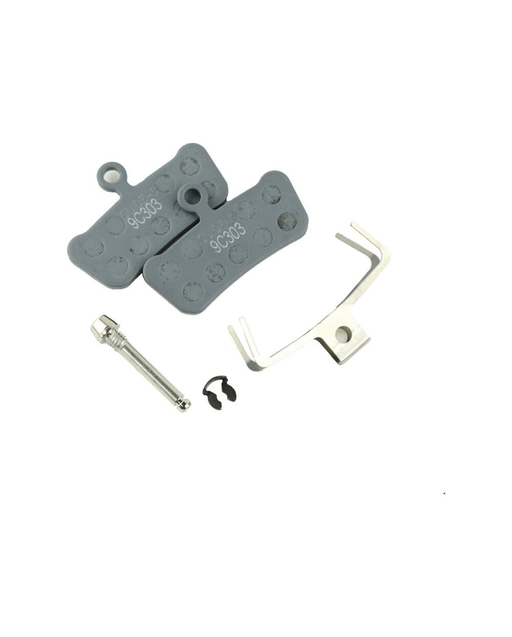Η συσκευασία περιλαμβάνει δύο τακάκια φρένων, ένα ελατήριο αποστάτη μεταξύ των τακακιών και ένα μπουλόνι τοποθέτησης με στοπ.