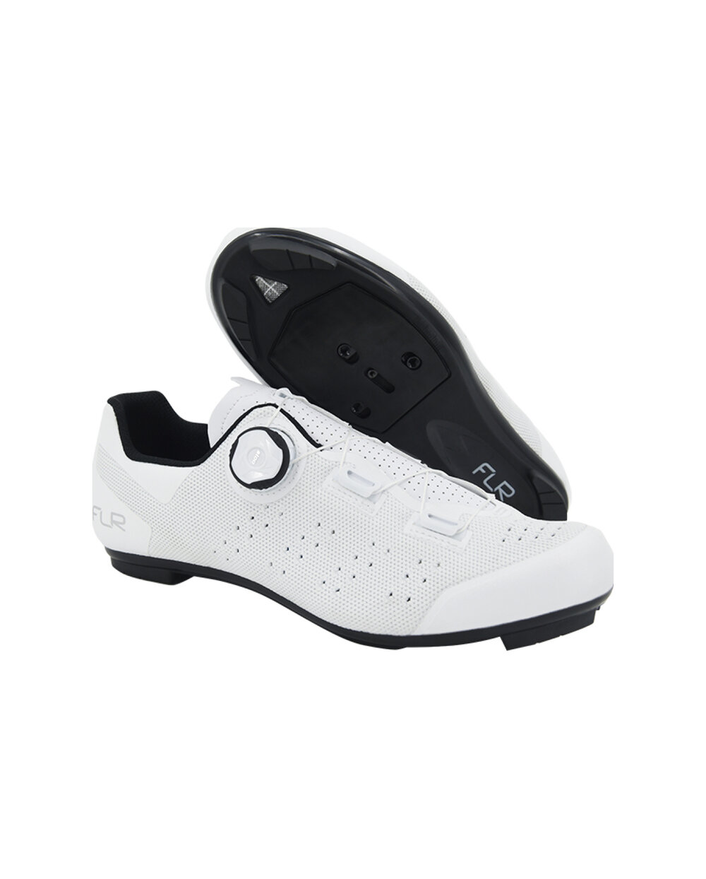 Ελαφριά, αναπνεύσιμα και έτοιμα για απόδοση - τα παπούτσια δρόμου FLR FNT-3 Knit White θα σας προσφέρουν έναν εξαιρετικό συνδυασμό άνεσης, μετάδοσης ισχύος και μοντέρνου σχεδιασμού. Χάρη στο πλεκτό επάνω μέρος, το sneaker προσαρμόζεται τέλεια στο σχήμα του ποδιού, παρέχει εξαιρετικό αερισμό και εξασφαλίζει σταθερότητα ακόμη και κατά την εντατική οδήγηση. Μια εξαιρετική επιλογή για ποδηλάτες δρόμου που αναζητούν μια ισορροπημένη αναλογία μεταξύ άνεσης και απόδοσης.Το πάνινο παπούτσια χρησιμοποιεί ένα ελαφρύ πλεκτό επάνω μέρος που είναι ενισχυμένο με κατασκευή TPU χωρίς ραφή για βέλτιστη στήριξη και ανθεκτικότητα. Το γρήγορο και ακριβές σφίξιμο εξασφαλίζεται από τον τροχό ATOP. Η νάιλον σόλα με υψηλή ακαμψία (δείκτης 7) μεταφέρει αποτελεσματικά την ισχύ στα πεντάλ και είναι συμβατή με θήκες τύπου SPD-SL (3 οπών). Η εσωτερική σόλα έχει ανατομικό σχήμα για καλύτερη άνεση και στήριξη της καμάρας.Κύρια πλεονεκτήματα: