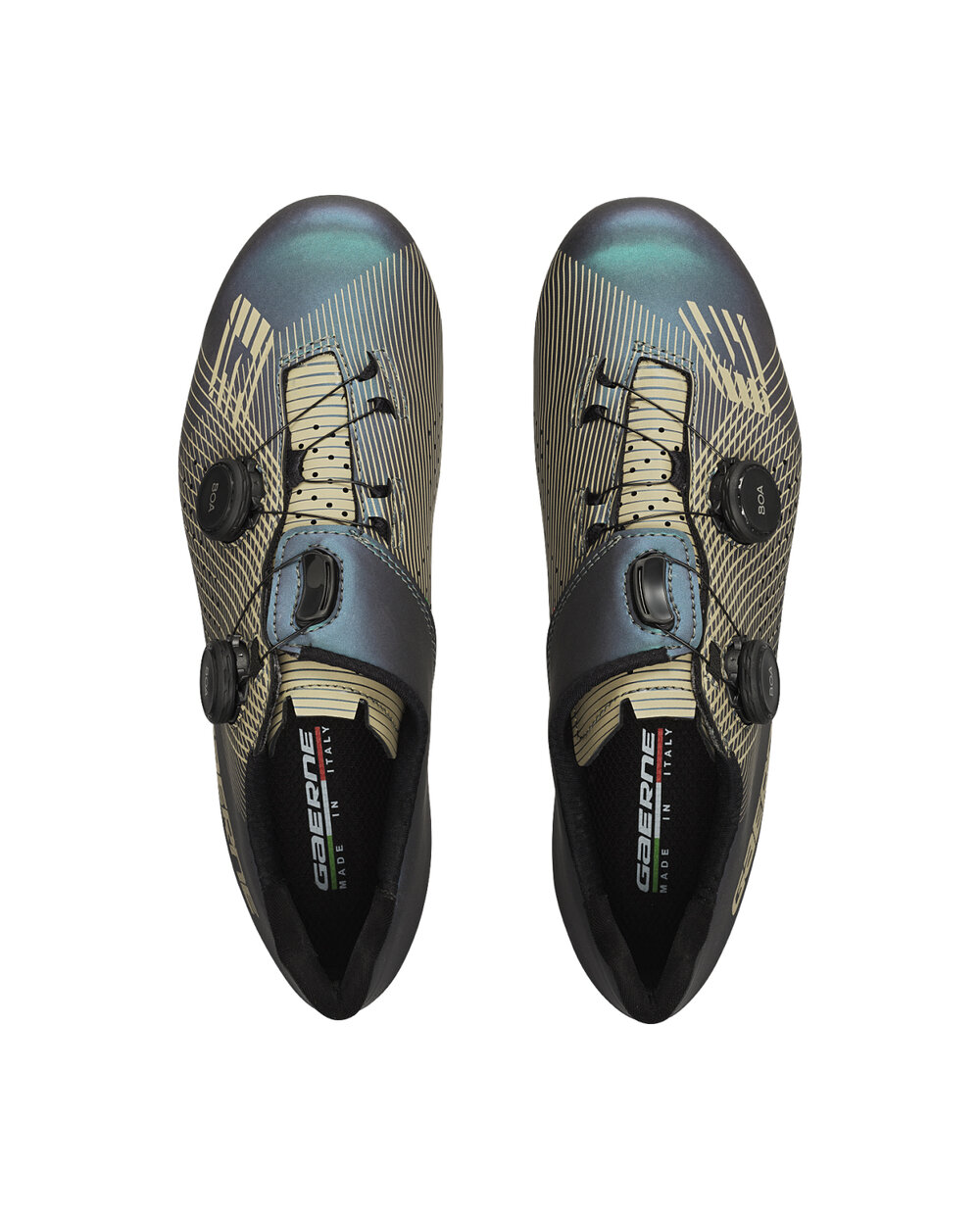 Το πέδιλο Carbon G.Fuga σχεδιάστηκε για να εξασφαλίζει την τέλεια θέση του ποδιού μέσα στο σανδάλι χάρη στην τεχνολογία TSS «Tarsal Support System», που επιτυγχάνει ομαλό πετάλι χωρίς απώλεια ενέργειας.