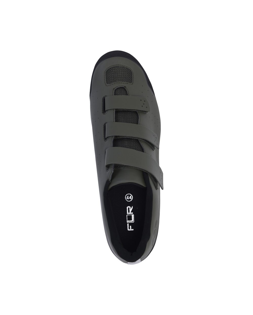 Τα παπούτσια FLR FX-1 MTB είναι υποδήματα ποδηλασίας σε προσιτές τιμές για ποδήλατα MTB και χαλίκι που προσφέρουν υψηλή απόδοση και άνεση. Τα sneakers είναι κατασκευασμένα από συνθετικό υλικό με έξι διχτυωτές πλάκες που εξασφαλίζουν εξαιρετικό αερισμό και κρατούν τα πόδια άνετα. Η στερέωση εξασφαλίζεται από τρεις συνδετήρες Velcro χαμηλού προφίλ, οι οποίοι επιτρέπουν ακριβή και ασφαλή ρύθμιση κατά την οδήγηση.Τα πάνινα παπούτσια FLR FX-1 έχουν νάιλον σόλα με διπλή πυκνότητα ωτίδων, που εξασφαλίζει καλύτερη πρόσφυση στο πεδίο. Στο μπροστινό μέρος της σόλας υπάρχουν τρύπες για τη στερέωση των άκρων για καλύτερο κράτημα σε χειμερινές συνθήκες ή κατά τη διάρκεια του cyclocross. Η εσωτερική σόλα είναι εξοπλισμένη με στήριγμα καμάρας για αύξηση της άνεσης και μείωση της κούρασης των ποδιών κατά τη διάρκεια μεγάλων βόλτων. Η γεμισμένη γλώσσα του παπουτσιού έχει εργονομικό σχήμα και αναπνέει, απομακρύνει γρήγορα την υγρασία και κατανέμει ομοιόμορφα την πίεση στο πόδι.