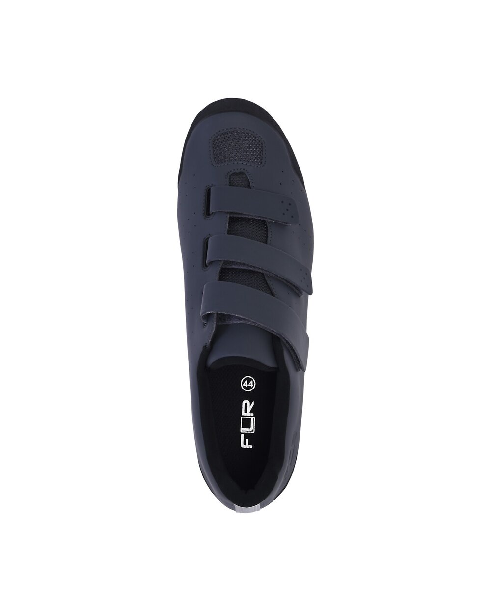 Τα παπούτσια FLR FX-1 MTB είναι υποδήματα ποδηλασίας σε προσιτές τιμές για ποδήλατα MTB και χαλίκι που προσφέρουν υψηλή απόδοση και άνεση. Τα sneakers είναι κατασκευασμένα από συνθετικό υλικό με έξι διχτυωτές πλάκες που εξασφαλίζουν εξαιρετικό αερισμό και κρατούν τα πόδια άνετα. Η στερέωση εξασφαλίζεται από τρεις συνδετήρες Velcro χαμηλού προφίλ, οι οποίοι επιτρέπουν ακριβή και ασφαλή ρύθμιση κατά την οδήγηση.Τα πάνινα παπούτσια FLR FX-1 έχουν νάιλον σόλα με διπλή πυκνότητα ωτίδων, που εξασφαλίζει καλύτερη πρόσφυση στο πεδίο. Στο μπροστινό μέρος της σόλας υπάρχουν τρύπες για τη στερέωση των άκρων για καλύτερο κράτημα σε χειμερινές συνθήκες ή κατά τη διάρκεια του cyclocross. Η εσωτερική σόλα είναι εξοπλισμένη με στήριγμα καμάρας για αύξηση της άνεσης και μείωση της κούρασης των ποδιών κατά τη διάρκεια μεγάλων βόλτων. Η γεμισμένη γλώσσα του παπουτσιού έχει εργονομικό σχήμα και αναπνέει, απομακρύνει γρήγορα την υγρασία και κατανέμει ομοιόμορφα την πίεση στο πόδι.