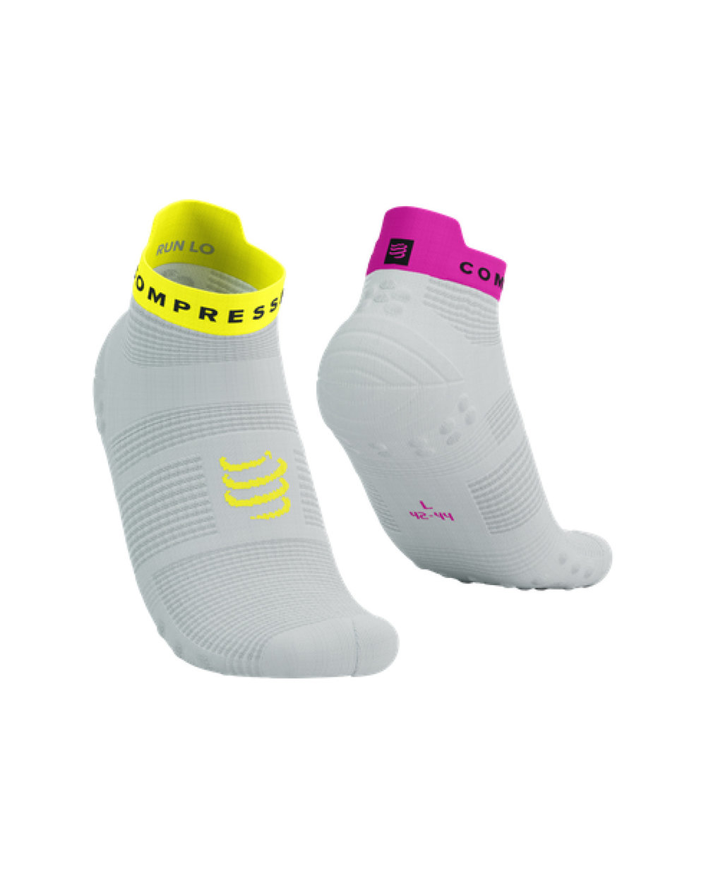Δοκιμασμένες σε εκατοντάδες χιλιόμετρα από την ομάδα μας, η 4η γενιά των Pro Racing Socks Run Low φέρνει επανάσταση στον αερισμό και την προστασία από φουσκάλες στα τρεξίματα με ζεστό καιρό. Η τεχνική ύφανση είναι ελαφριά και αεριζόμενη, απομακρύνοντας γρήγορα την υγρασία, ώστε τα πόδια σας να παραμένουν δροσερά και στεγνά. Ένα επανασχεδιασμένο, φαρδύτερο κουτί δακτύλων προσφέρει πιο εργονομική εφαρμογή και βελτιωμένη ιδιοδεκτικότητα, επιτρέποντας στα δάχτυλα των ποδιών να πιάσουν διαισθητικά κατά την προσγείωση για ένα φυσικό, ρευστό βηματισμό. Η ελαφριά πλέξη γύρω από τη φτέρνα, πανομοιότυπη με την έκδοση PRS High, προσφέρει στοχευμένη υποστήριξη όταν επιταχύνετε το ρυθμό, ενώ η επένδυση από ύφασμα πετσετέ στο μεγάλο δάχτυλο του ποδιού σας προφυλάσσει από μαυρισμένα νύχια σε μεγαλύτερα τρεξίματα. Η μεσαία στήριξη της καμάρας ενισχύει τη μικροκυκλοφορία και αποτρέπει το στρίψιμο και την αναδίπλωση του υφάσματος, ώστε να κρατήσει μακριά τις επώδυνες φουσκάλες και τους ερεθισμούς. Η ολοκαίνουργια τεχνολογία Flat.Dots ενώνει ειδικές 3D.dots γύρω από τον τένοντα του Αχιλλέα για πρόσθετη επένδυση και προστασία καθώς τα πόδια σας χτυπούν την άσφαλτο. Κάτω από το πέλμα, ένα μοτίβο από 3D.Dots (75%) και Flat.Dots (25%) μαλακώνει τις κρούσεις και προσφέρει πρόσθετο εξαερισμό, πρόσφυση στο παπούτσι καθώς και ήπια διέγερση για την ενίσχυση της φλεβικής επιστροφής και την καθυστέρηση της κόπωσης. Η ανατομική εφαρμογή και οι τεχνολογίες είναι ειδικά στοχευμένες στις απαιτήσεις του τρεξίματος δρόμου, ενώ το χαμηλό κόψιμο διασφαλίζει ότι η υπερθέρμανση δεν αποτελεί ποτέ ανησυχία. Μια εργονομική καρτέλα στο πίσω μέρος προσθέτει μια πινελιά άνεσης και στυλ και, αν ποτέ ξεχάσετε ότι βγαίνετε για τρέξιμο, η πειθαρχία είναι διακριτικά κεντημένη στο εσωτερικό. Ο κλασικός σχεδιασμός είναι ένα νεύμα στο DNA των επιδόσεών μας, ώστε το μόνο που σας μένει να κάνετε είναι να στοχεύσετε στο επόμενο PB σας.