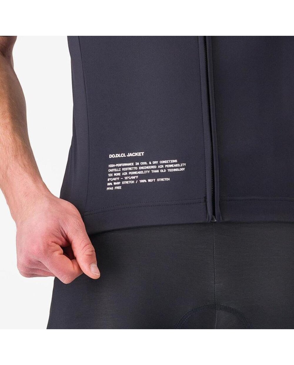 Το μυστικό βρίσκεται στην τεχνολογία Castelli Ristretto. Κατά τη διάρκεια της ανάπτυξης, έχουμε λάβει υπόψη τη διαπερατότητα του αέρα και δημιουργήσαμε ένα υλικό που είναι ανθεκτικό στον άνεμο, αλλά μεταδίδει μια πολύ μικρή ποσότητα αέρα μέσω του υφάσματος, επιτρέποντας την καλύτερη εξάτμιση του ιδρώτα και σας κρατά ξηρό. Πόσο ακριβώς μεταδίδεται ο αέρας; Do.di.ci. Στα ιταλικά σημαίνει "Δώδεκα" επειδή αυτό το σακάκι μεταδίδει 12 φορές περισσότερο αέρα από το παλιό Gabba. Είναι σαν τη διαφορά ανάμεσα στα παντελόνια κύκλου ξήρανσης σε ένα κρύο και υγρό κελάρι και σε ένα δωμάτιο όπου μετατοπίζεται ένα ελαφρύ αεράκι.
