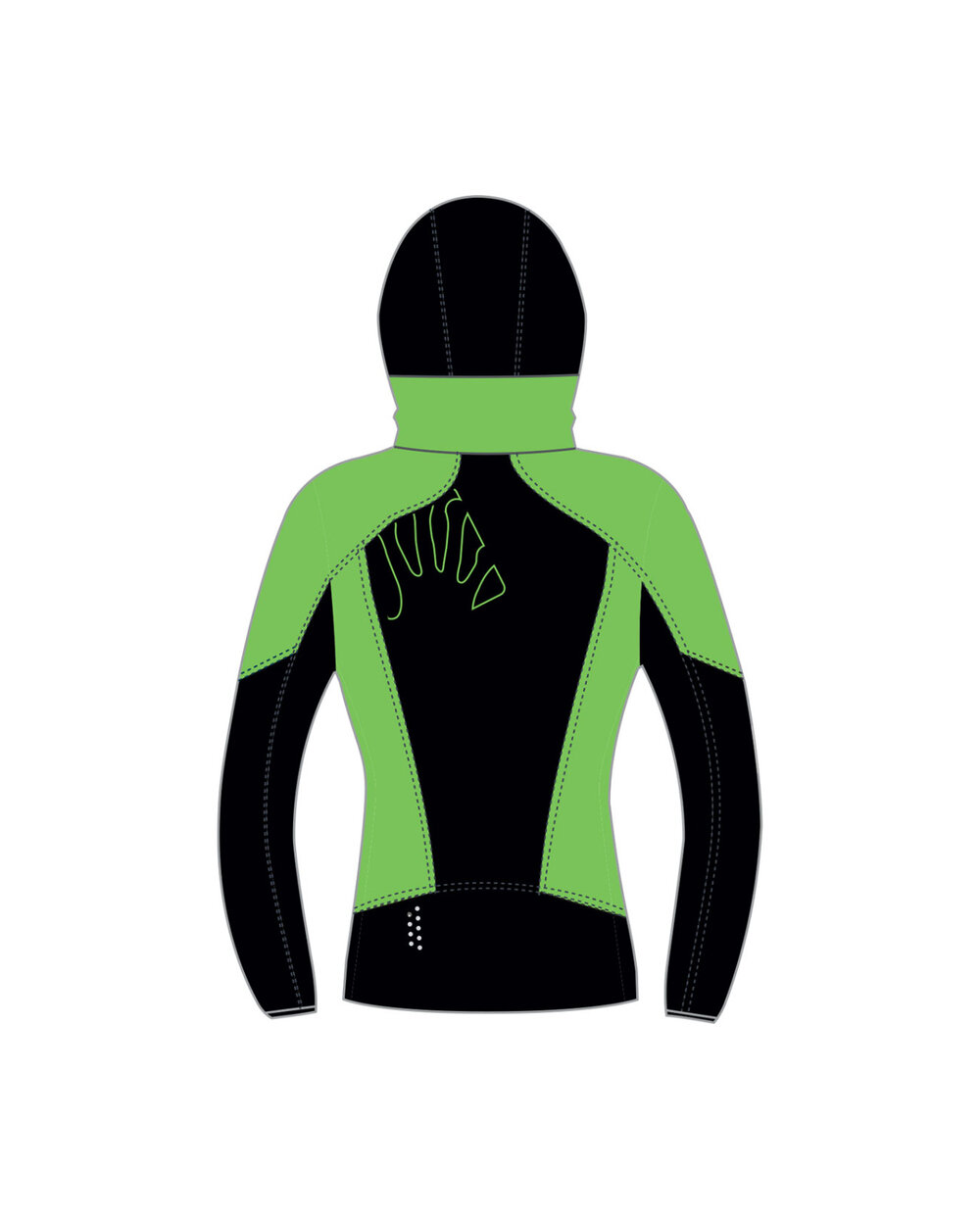 στο κάτω μέρος του σακακιού, στο κάτω μέρος των μανικιών, στην πλάτη και στην κουκούλα, εξαιρετικά αναπνεύσιμο υλικό Sensitive Plus 117g