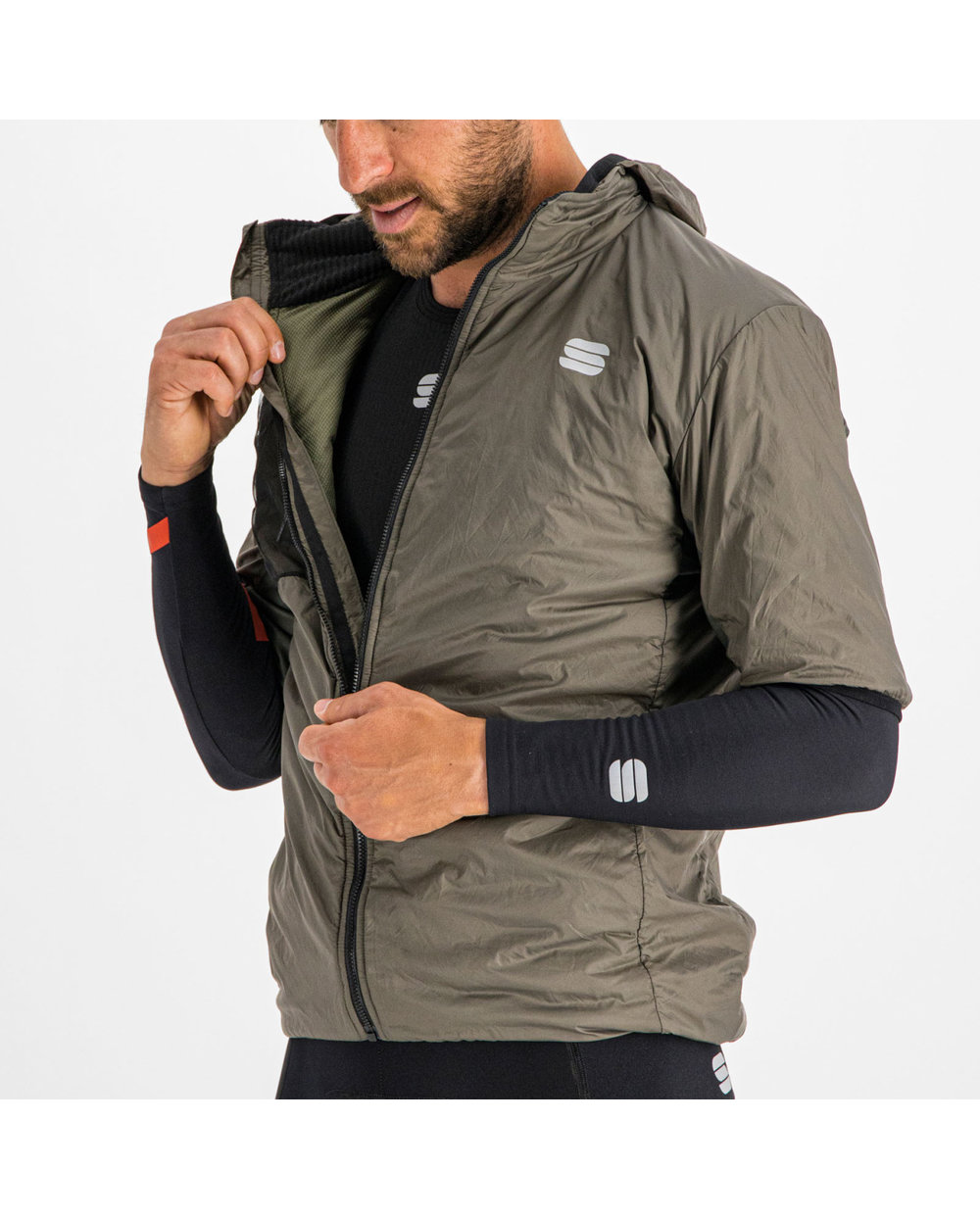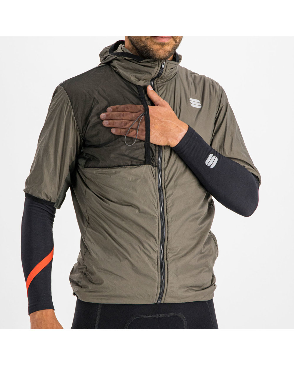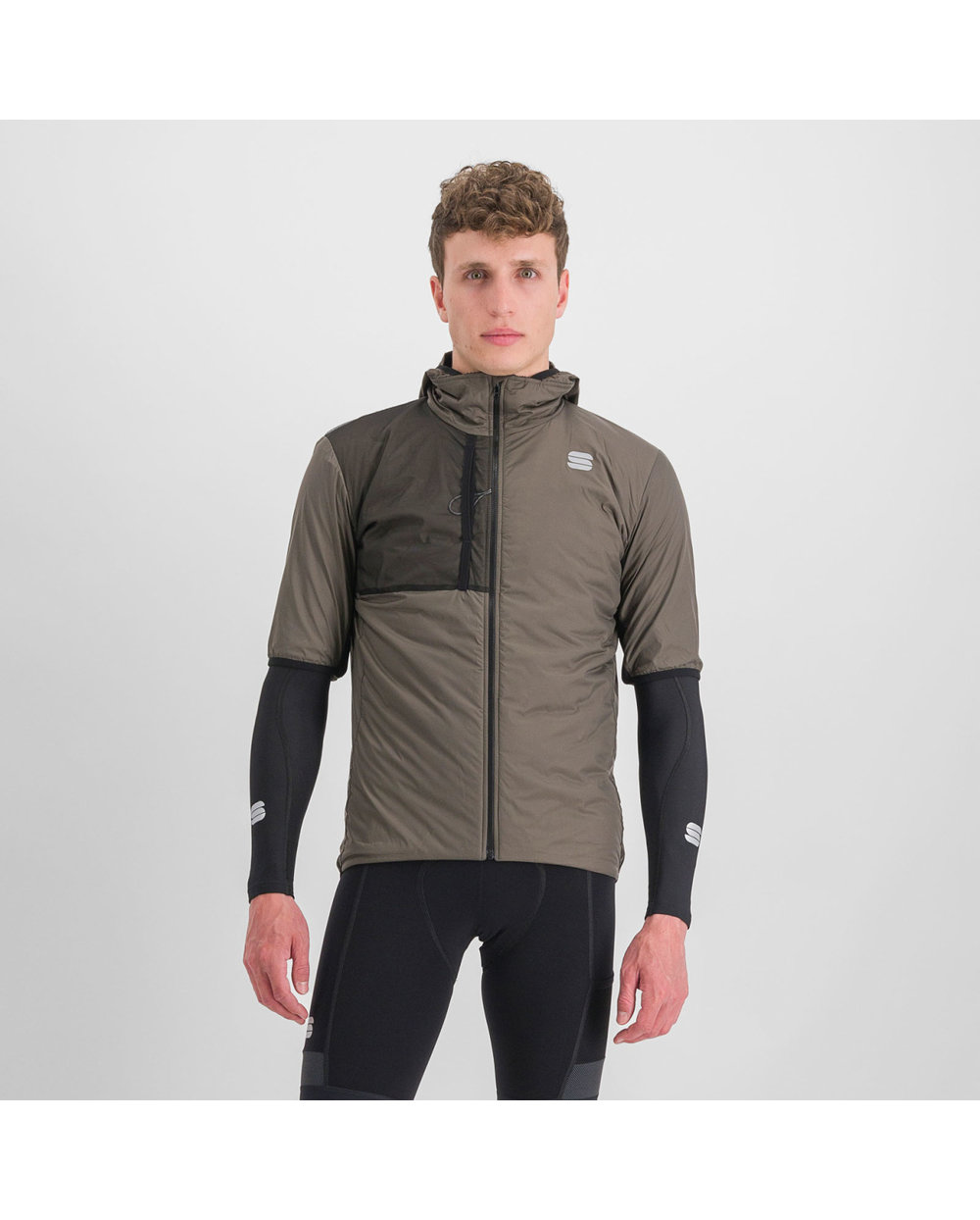 Ζεστόá μπουφάν ποδηλασίας με κουκούλα και μπλούζαáυφασμέναáμπράτσα Το Sportful Supergiara Puffy θα σας κρατήσει ζεστούς όχι μόνο κατά τη διάρκεια μεγάλωνýδιαδρομών, αλλά και κατά τη διάρκεια της ξεκούρασης. Είναι κατασκευασμένο από ένα ελαφρύéκορυφαίοéυλικόáτο οποίοáέχειá υδατοαπωθητικόú δικαίωμα. Ηýγεννημένηúúúúúσυγκράτηση της ζεστασιάς και η διαπνοή παρέχονται από τηáσυνθετικήáThermoreáμόνωση. Για πλήρη ελευθερία κινήσεων, τα ελαστικά τμήματα στις πλευρές του σακακιού είναι ελαστικά. Όταν χρειάζεται, το μπουφάν μπορεί εύκολα να διπλωθεί στην μπροστινή διχτυωτή τσέπη και να τοποθετηθεί σε ένα σακίδιο πλάτης ή να συνδεθεί στο τιμόνι ή στο rám του ποδηλάτου χρησιμοποιώντας τα ελαστικά pás.  Χαρακτηριστικά του μπουφάν ποδηλασίας