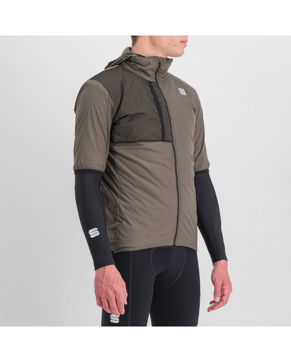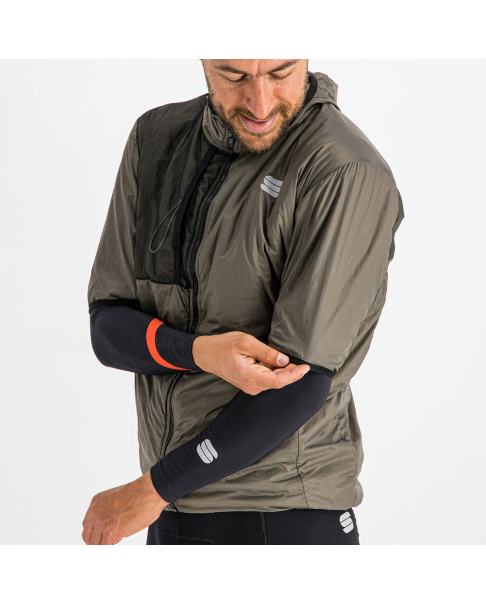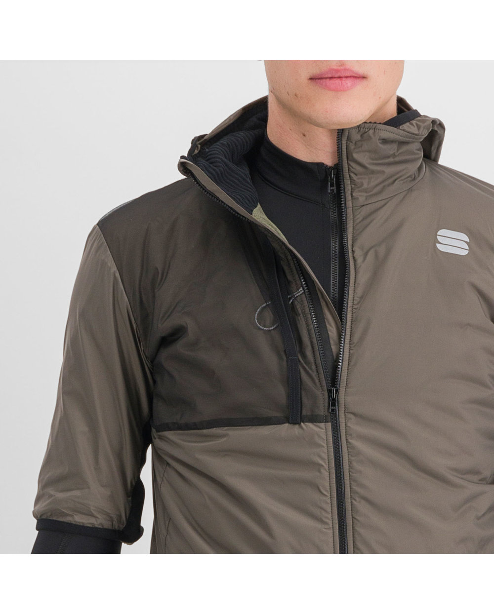 Ζεστόá μπουφάν ποδηλασίας με κουκούλα και μπλούζαáυφασμέναáμπράτσα Το Sportful Supergiara Puffy θα σας κρατήσει ζεστούς όχι μόνο κατά τη διάρκεια μεγάλωνýδιαδρομών, αλλά και κατά τη διάρκεια της ξεκούρασης. Είναι κατασκευασμένο από ένα ελαφρύéκορυφαίοéυλικόáτο οποίοáέχειá υδατοαπωθητικόú δικαίωμα. Ηýγεννημένηúúúúúσυγκράτηση της ζεστασιάς και η διαπνοή παρέχονται από τηáσυνθετικήáThermoreáμόνωση. Για πλήρη ελευθερία κινήσεων, τα ελαστικά τμήματα στις πλευρές του σακακιού είναι ελαστικά. Όταν χρειάζεται, το μπουφάν μπορεί εύκολα να διπλωθεί στην μπροστινή διχτυωτή τσέπη και να τοποθετηθεί σε ένα σακίδιο πλάτης ή να συνδεθεί στο τιμόνι ή στο rám του ποδηλάτου χρησιμοποιώντας τα ελαστικά pás.  Χαρακτηριστικά του μπουφάν ποδηλασίας