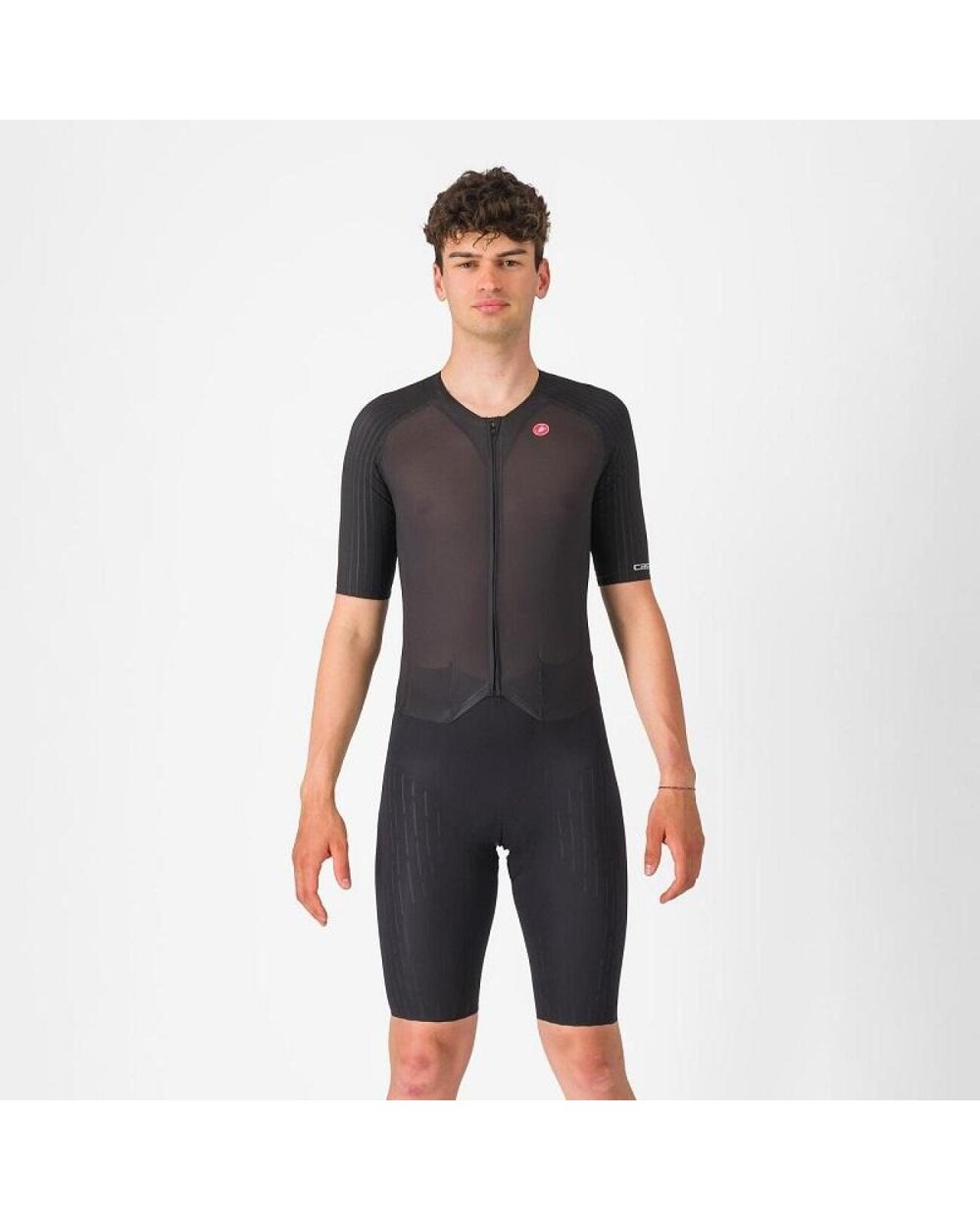 Βελτιστοποιημένη στολή αεροσκαφών για αγώνες και βαριές προπονήσεις Κατανομή υλικού και ραφών με βάση την ανάλυση CFD Το ειδικά ανεπτυγμένο ύφασμα στους ώμους μειώνει την αντίσταση του αέρα σε υψηλότερες ταχύτητες, μπορεί να μειώσει τον συντελεστή CdA έως και 6% Κολλημένο άκρο των μανικιών για περισσότερη άνεση Ελαφρύ υλικό κορμού για βέλτιστη ψύξη, αναπνοή και δυναμική εφαρμογή2 το κάτω στρίφωμα του παντελονιού στη θέση Σόλα Progetto X2Air για άνεση ακόμα και στις μεγαλύτερες διαδρομές Χρώματα: 010 μαύρο Μεγέθη: XS – 3XL Βάρος: 264 g Εύρος θερμοκρασίας: 15-35°C Περικοπή: σώμα Αυτή η φόρμα ξεκίνησε μια επανάσταση. Πριν το κοστούμι του Σαν Ρέμο κάνει το ντεμπούτο του στον αγώνα Παρίσι-Ρουμπέ το 2011, η ιδέα να φορέσεις κοστούμι για οτιδήποτε άλλο εκτός από χρονομέτρηση ακουγόταν τρελή. Αλλά όταν πήρε αμέσως τη νίκη στην πρεμιέρα της, ο τρόπος που ντύνονται οι ποδηλάτες για τους αγώνες άλλαξε για πάντα. Η τελευταία του έκδοση, San Remo BTW, είναι ακόμα πιο γρήγορη. Το επάνω μέρος αποτελείται από μια νέα, επανασχεδιασμένη φανέλα Aero Race 8S με τοποθέτηση ραφών βάσει ανάλυσης CFD και με ειδικό ραβδωτό ύφασμα στα μανίκια για καλύτερη αεροδυναμική. Το κάτω μέρος είναι από το ανανεωμένο, αεροδυναμικά βελτιστοποιημένο σορτς Free Aero Race S. Παραδοσιακά, οι φόρμες μπορούν να ξεκολλήσουν τελείως το φερμουάρ μπροστά για καλύτερο αερισμό και ευκολότερη μεταφορά, υπάρχουν τρεις πίσω τσέπες. Η σόλα Progetto X2 Air εξασφαλίζει άνεση ακόμα και στις πιο γρήγορες βόλτες ή αγώνες