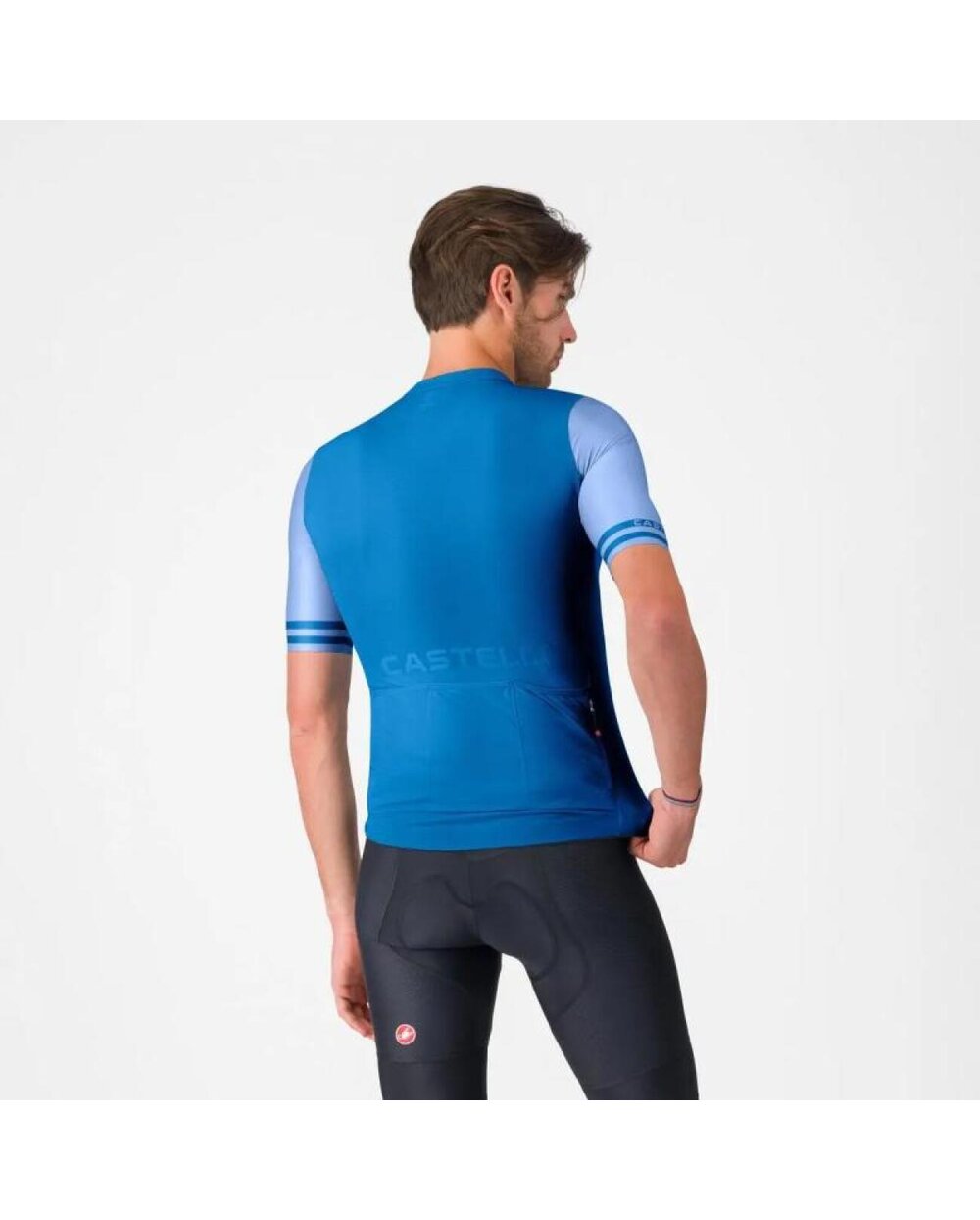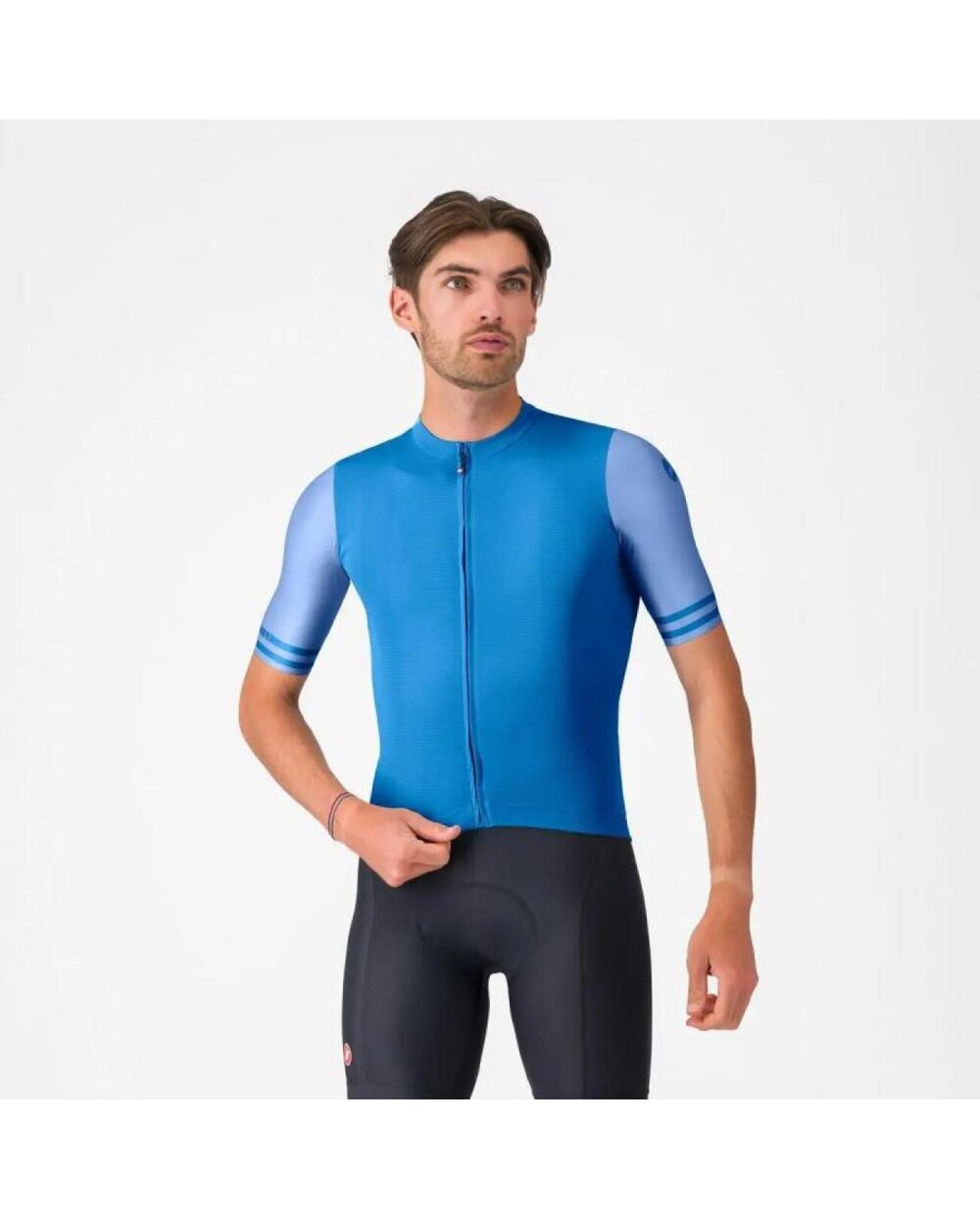 Υπεραέρινο υλικό 100% πολυεστέρα 66% κατασκευασμένο από ανακυκλωμένες ίνες Επίπεδες σφραγισμένες άκρες μανικιών για σταθερή θέση στο μπράτσο Μακρύ φερμουάρ YKK® Castelli® με φερμουάρ στην πλάτη Ελαστική ζώνη μέσης σιλικόνης Εύρος θερμοκρασίας: 18-35°C Βάρος: (M) 116 gr Εφαρμογή: προσαρμόσιμο