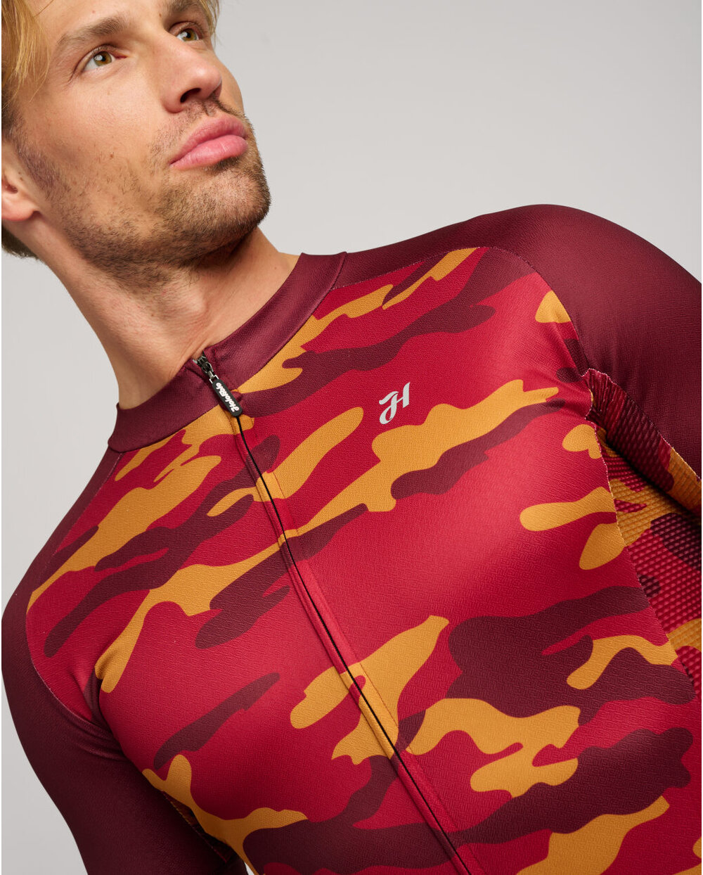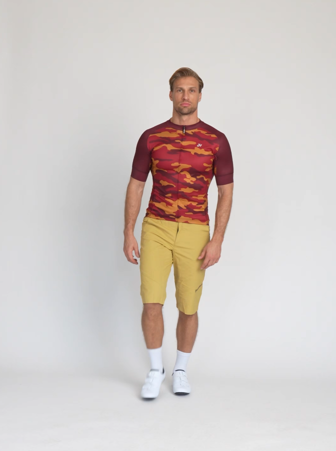 Είναι κατασκευασμένο από ισχυρότερο ελαστικό υλικό σε συνδυασμό με διχτυωτό ύφασμα υψηλής αναπνοής στα πλαϊνά για αποστράγγιση του ιδρώτα. It is equipped with a classic triple pocket and a zippered security pocket. Υπάρχουν αντιολισθητικές άκρες στην κάτω περιφέρεια της φανέλας και στα μανίκια. Το σχέδιο της φανέλας συμπληρώνεται από ένα μοτίβο παραλλαγής που υπογραμμίζει τον φυσικό της χαρακτήρα.