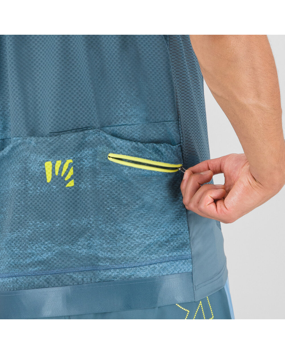 Καλοκαιρινή φανέλα MTB Το Karpos Green Fire είναι κατασκευασμένο από ένα ζευγάρι λειτουργικών υλικών που παρέχουν βέλτιστη άνεση ακόμα και κατά την ολοήμερη οδήγηση. Στο μπροστινό μέρος, υπάρχει ένα μαλακό, ελαστικό υλικό που εξασφαλίζει άνετη εφαρμογή. Η καλύτερη αποστράγγιση του ιδρώτα από το δέρμα (ακόμα και όταν φοράτε σακίδιο) εξασφαλίζεται από διάτρητο υλικό στα πλαϊνά, τα μανίκια και την πλάτη. Για να αποθηκεύσετε όλα τα απαραίτητα πράγματα, η φανέλα είναι εξοπλισμένη με 3 ευρύχωρες τσέπες και μια μικρότερη εσωτερική τσέπη.