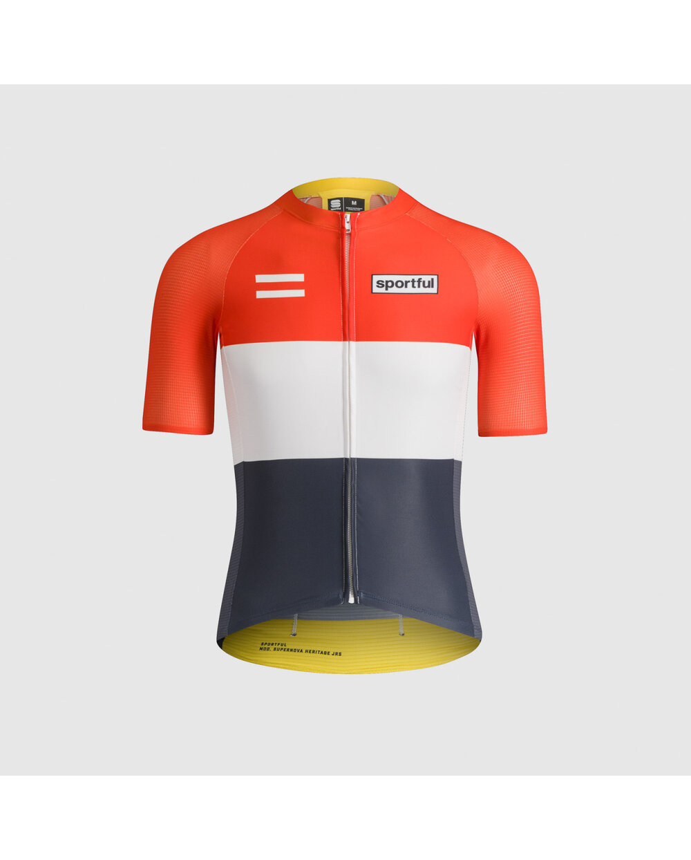 Εμπνευσμένο από το παρελθόν. Κατασκευασμένο για ταχύτητα.  Το Limited Edition Modern Heritage από την ιταλική μάρκα Sportful είναι ένας φόρος τιμής στην ποδηλατική κληρονομιά και δεξιοτεχνία, σε συνδυασμό με τη σύγχρονη τεχνολογία και την καινοτομία. Αυτή η συλλογή συνδυάζει εμβληματικά σχεδιαστικά στοιχεία με τα πιο πρόσφατα υλικά για να δημιουργήσει ρούχα που δεν είναι μόνο κομψά αλλά και λειτουργικά. Η αγωνιστική ποδηλατική φανέλα Supernova Heritage αναπτύχθηκε με έμφαση στην αεροδυναμική, λειτουργικότητα και άνεση. Είναι ελαφρύ, εξαιρετικά αναπνεύσιμο και άνετο ακόμη και με τη μέγιστη χρήση στο εύρος θερμοκρασίας 15°C έως 35°C. Υπερελαφρή κατασκευή πολυεστέρα και ελαστάνης διασφαλίζει την τέλεια απομάκρυνση του ιδρώτα