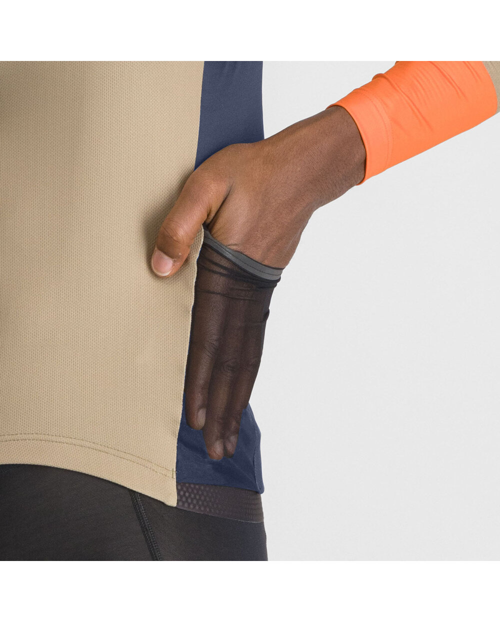 Η φανέλα είναι κατασκευασμένη από πολυεστερικό υλικό, το οποίο χαρακτηρίζεται από λεία αναπνεύσιμη επιφάνεια και λεπτή χτενισμένη εσωτερική πλευρά. Αυτό το υλικό διατηρεί αποτελεσματικά τη θερμότητα του σώματος ενώ αφήνει την υγρασία να διαφύγει, αποτρέποντας έτσι την υπερθέρμανση και διατηρώντας σας στεγνό ακόμα και κατά τη διάρκεια έντονης ποδηλασίας.