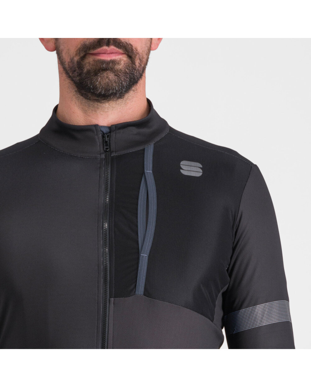 αντανακλαστικά στοιχεία στο αριστερό μανίκι και στην πλάτη