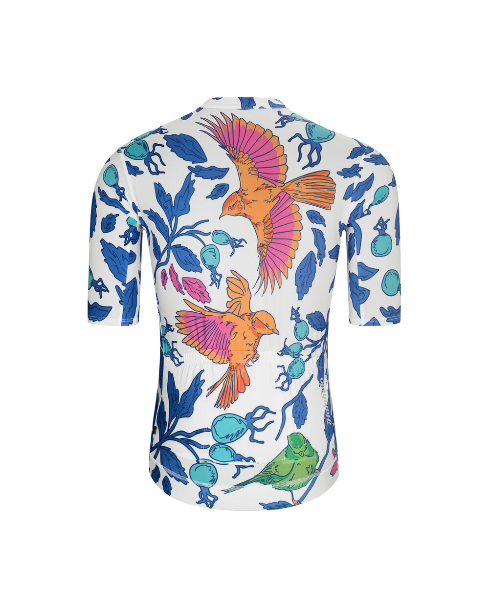 Η φανέλα SPARROVER σε λευκό-πολύχρωμη εκδοχή εντυπωσιάζει με την πρώτη ματιά με την πρωτότυπη εικονογράφηση, η οποία προσδίδει στον ποδηλατικό σας εξοπλισμό μοναδικό χαρακτήρα. Το ελαφρύ και ποιοτικό υλικό είναι πολύ ευχάριστο στο σώμα, εξαιρετικά αναπνεύσιμο και χάρη στην ελαστικότητά του προσαρμόζεται στο σώμα. Πρακτικές λεπτομέρειες όπως το φερμουάρ που κλείνει σε όλο το μήκος με προστασία για το λαιμό, η τριπλή πίσω τσέπη με τσέπη ασφαλείας με φερμουάρ και το χωρίς ραφές στρίφωμα με αντιολισθητική εκτύπωση αυξάνουν την άνεση σε κάθε βόλτα.