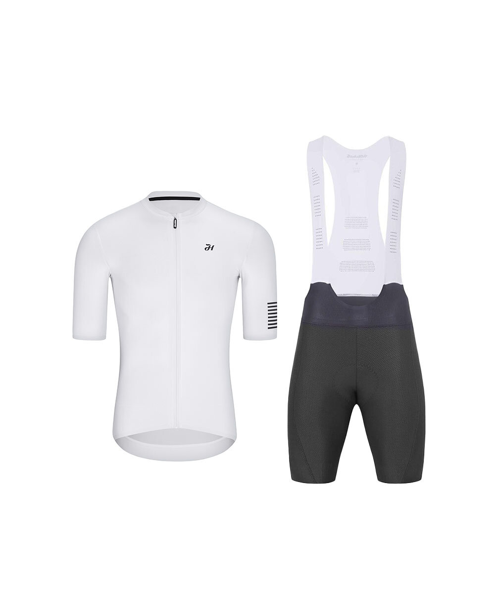 Το κομψό και υψηλών επιδόσεων σετ ποδηλασίας Holokolo αποτελεί την ιδανική επιλογή για όλους τους ποδηλάτες που αναζητούν τον συνδυασμό άνεσης, λειτουργικότητας και μοντέρνου σχεδιασμού. Ο συνδυασμός της φανέλας VICTORIOUS ELITE σε λευκό χρώμα και του σορτς με τιράντες NOVEL PRO σε ανθρακί χρώμα προσφέρει μια ισορροπημένη στολή κατάλληλη για προπονήσεις, μεγάλες διαδρομές αλλά και έντονη αθλητική δραστηριότητα.