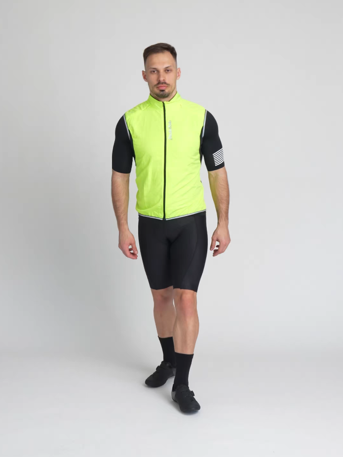Ελαφρύ, αντιανεμικό και μερικώς αδιάβροχο γιλέκο από εξαιρετικά ελαφρύ πολυεστερικό ύφασμα. Η αναπνοή εξασφαλίζεται από δύο μικρότερα πάνελ από πλέγμα στους ώμους εκτός από δύο πλευρικά πάνελ από πλέγμα. Περιλαμβάνει μια μικρή θήκη μέσα στην οποία μπορείτε εύκολα να συσκευάσετε το γιλέκο και να το μεταφέρετε μαζί σας οπουδήποτε.
