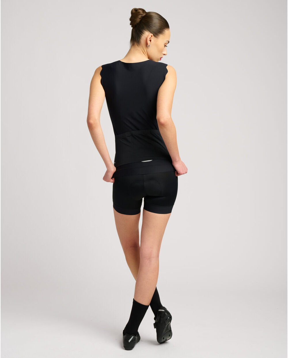 Αμάνικο ποδηλατικό μπλουζάκι με τέλειο καμπυλωτό στρίφωμα, που φέρνει πλήρη λάμψη και στα ποδηλατικά ρούχα. Πιο χοντρές κυματιστές τιράντες και τετράγωνη λαιμόκοψη πιο επίπεδες αναλογίες ώμων και κάθε είδους ντεκολτέ. Δεν του λείπει ο εξοπλισμός που αναμένεται από μια ποιοτική φανέλα. Πλήρες μπροστινό φερμουάρ με προστατευτικό κάλυμμα λαιμού. Τριπλή τσέπη με τσέπη ασφαλείας με φερμουάρ. Άνευ ραφής στρίφωμα με αντιολισθητικό τύπωμα στο πίσω μέρος της φανέλας.