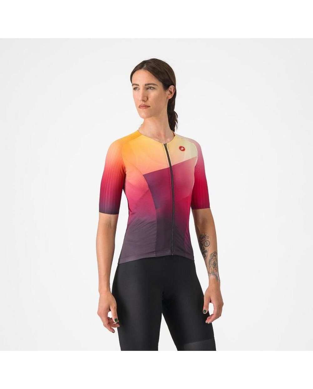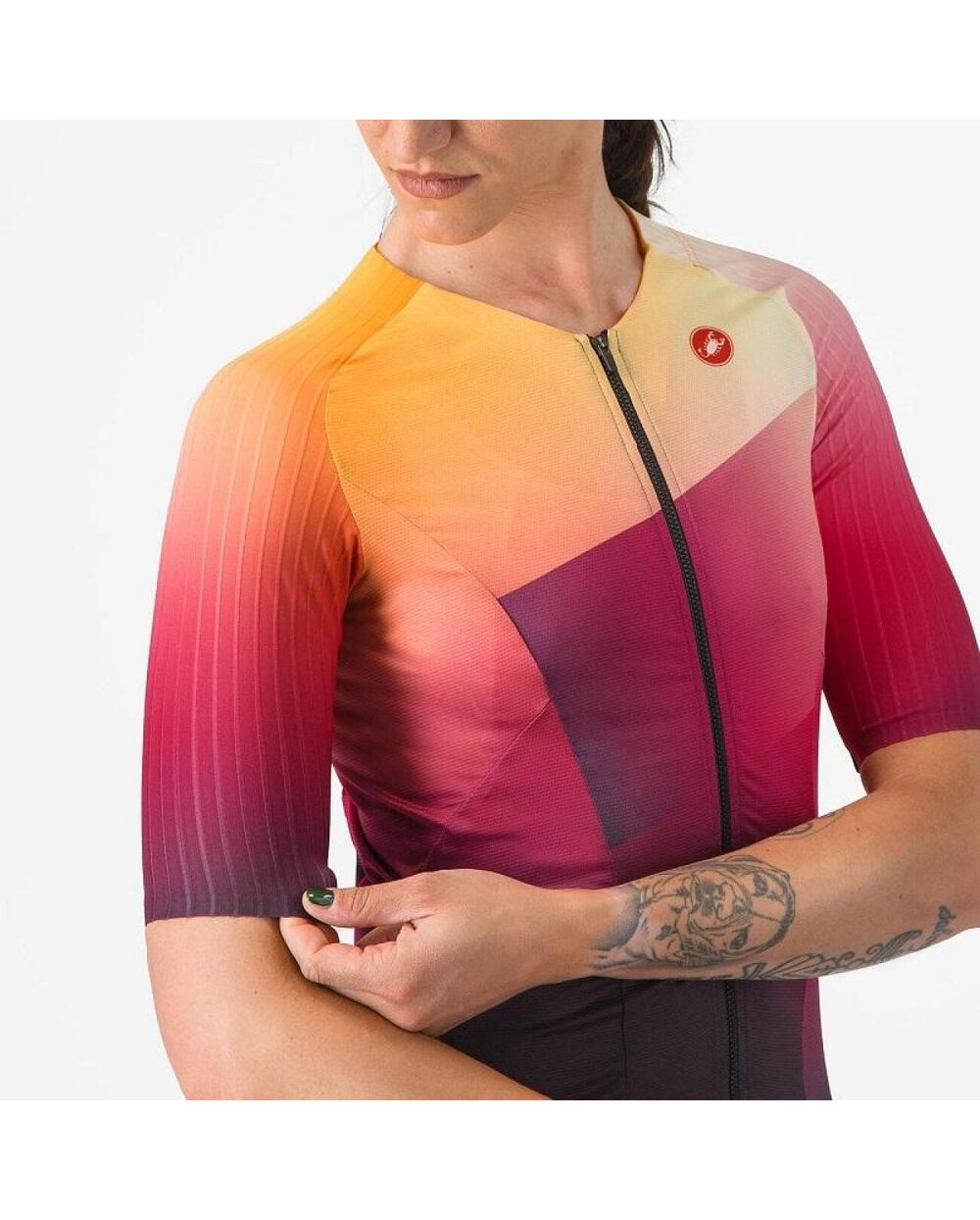 ΤΙ ΕΙΝΑΙ / ΧΑΡΑΚΤΗΡΙΣΤΙΚΑ ΠΡΟΪΟΝΤΟΣ Κορυφαία αεροδυναμική, άνεση και προστασία των κορυφαίων αγωνιστικών κοστουμιών μας σε μια έκδοση για όσους προτιμούν σετ δύο τεμαχίων Ελευθερία κίνησης, αεροδυναμική στο ποδήλατο, άνεση και προστασία κατά το τρέξιμο Υλικό και κατανομή ραφών με βάση την ανάλυση CFD Ειδικά αναπτυγμένο υλικό με ραβδώσεις στους ώμους και τα μανίκια με σημαντική μείωση της ταχύτητας C. Συγκολλημένο άκρο των μανικιών για περισσότερη άνεση ελαφρύ υλικό για βέλτιστη ψύξη, αναπνοή και άνεση Οι πίσω τσέπες αντιγράφουν την πλάτη και η αθλητική διατροφή δεν πέφτει μέσα τους Φερμουάρ YKK® Camlock® Επίπεδη ελαστική ζώνη μέσης που ταιριάζει στο κάτω μέρος της πλάτης Κλείσιμο SnapLock στη μέση, το οποίο μπορείτε να χρησιμοποιήσετε για να στερεώσετε τη φανέλα στο παντελόνι, ώστε να μην τυλίγεται ενώ κολυμπάτε ή κάνετε ποδήλατο: XS-XL Βάρος: 124 g Εύρος θερμοκρασίας: 15-40° C Περικοπή: αγώνες Σήμερα σχεδόν όλοι αγωνίζονται σε ένα σετ με κοντά μανίκια. Ενώ οι φόρμες είναι πλέον ο κανόνας, εξακολουθούν να υπάρχουν επιχειρήματα υπέρ ενός σετ δύο τεμαχίων, ειδικά αν θέλετε να αλλάξετε μεταξύ των μαθημάτων ή θέλετε να ελαχιστοποιήσετε τον χρόνο που αφιερώνετε στη ζώνη μετάβασης. Αυτή η φανέλα συνδυάζει όλα τα πλεονεκτήματα μιας κοντομάνικης φόρμας με την ευελιξία ενός τοπ και του αγαπημένου σας σορτς. Ο επαναστατικός σχεδιασμός βραχίονα και μανίκι είναι μια επίδειξη του Castelli DNA, το οποίο είναι η βελτίωση της απόδοσης και της αεροδυναμικής, που υποστηρίζεται από αμέτρητες προσομοιώσεις CFD και δοκιμές αεροδυναμικής σήραγγας. Η αεροδυναμική είναι απαραίτητη, αλλά δεν θέλετε να θυσιάσετε την άνεση για αυτήν. Η δομή της φανέλας είναι προσαρμοσμένη και στους τρεις κλάδους και τα εκλεκτά υλικά με καλή αναπνοή και προστασία από την υπεριώδη ακτινοβολία θα βελτιώσουν την αγωνιστική σας εμπειρία. Λεπτομέρειες όπως δύο αρκετά μεγάλες πίσω τσέπες για αθλητική διατροφή ή το σύστημα Castelli SnapLock, το οποίο μπορείτε να χρησιμοποιήσετε για να στερεώσετε το επάνω μέρος στο σορτς τριάθλου Castelli, εγγυώνται ότι δεν χρειάζεται να θυσιάσετε τίποτα όταν προτιμάτε ένα σετ δύο τεμαχίων από μια φόρμα.