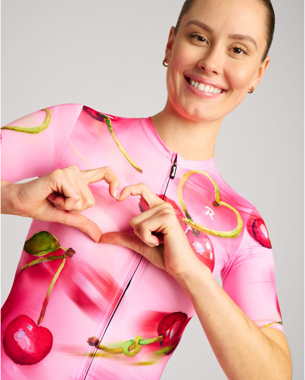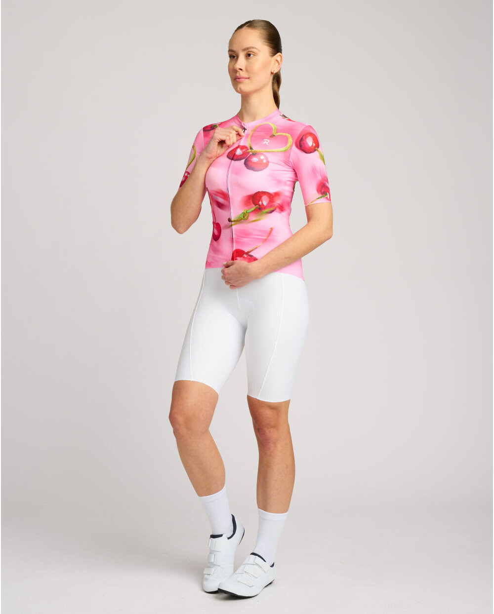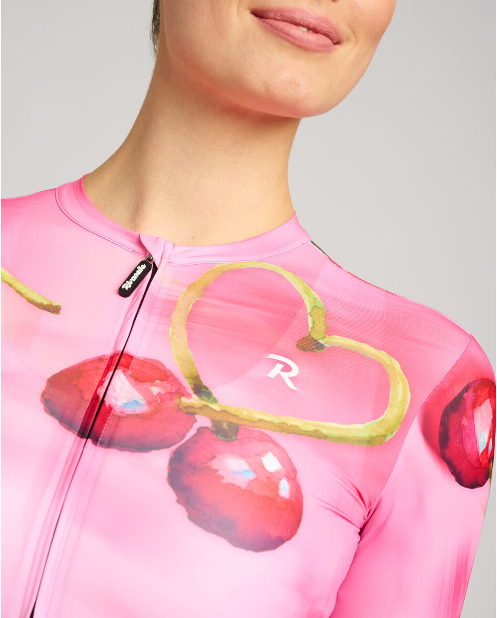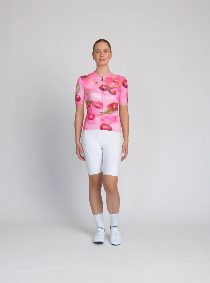 Το Cherie δεν είναι απλώς μια φανέλα – είναι μια διάθεση – η γλύκα του καλοκαιριού και η θηλυκότητα. Χειροποίητα εικονογραφημένα κεράσια που αναβοσβήνουν στο ύφασμα εν κινήσει – ακριβώς όπως εσείς στο δρόμο. Η λεπτομέρεια σε σχήμα καρδιάς από το κοτσάνι του κερασιού είναι μια διακριτική, αλλά παιχνιδιάρικη υπογραφή αγάπης για την ποδηλασία.