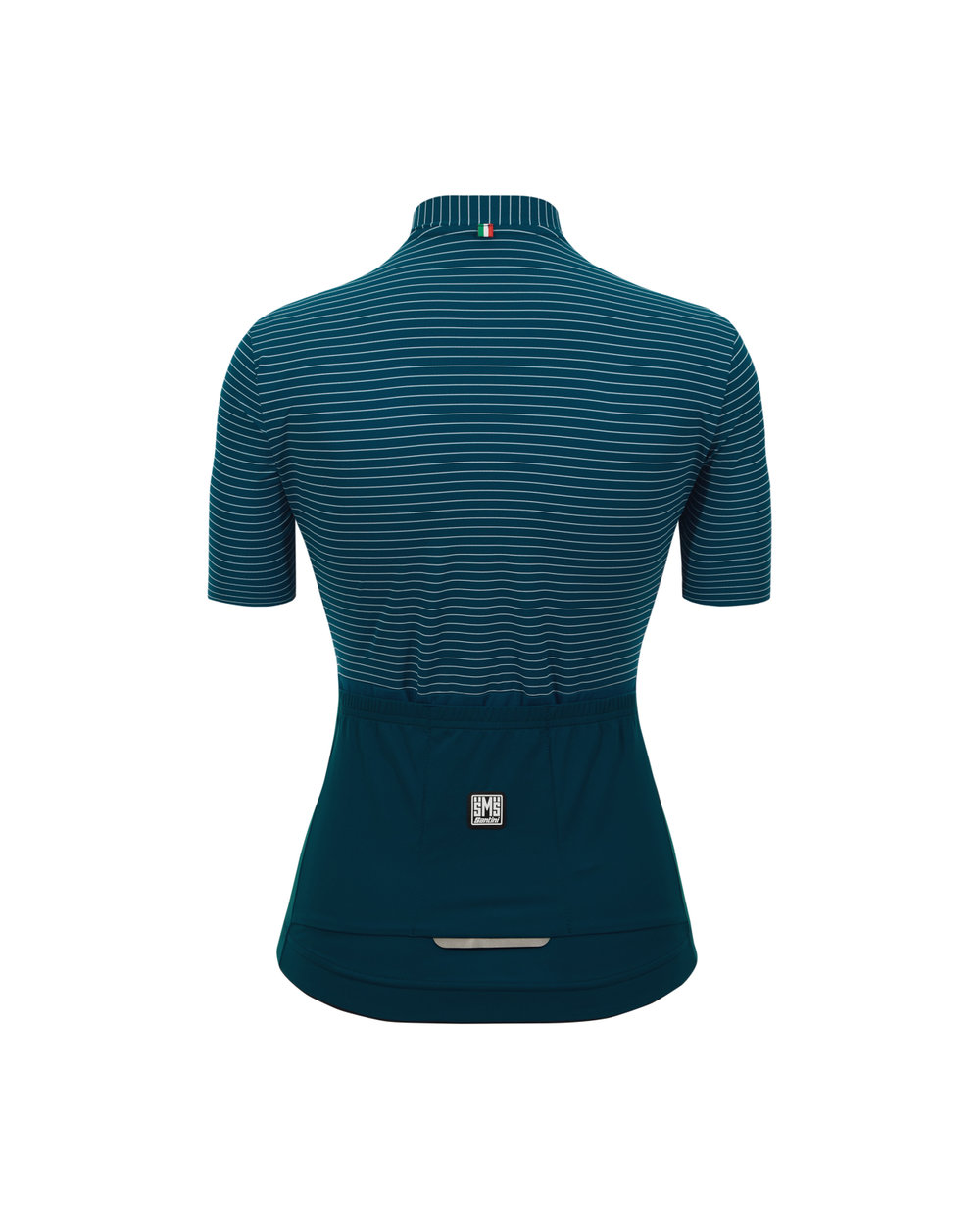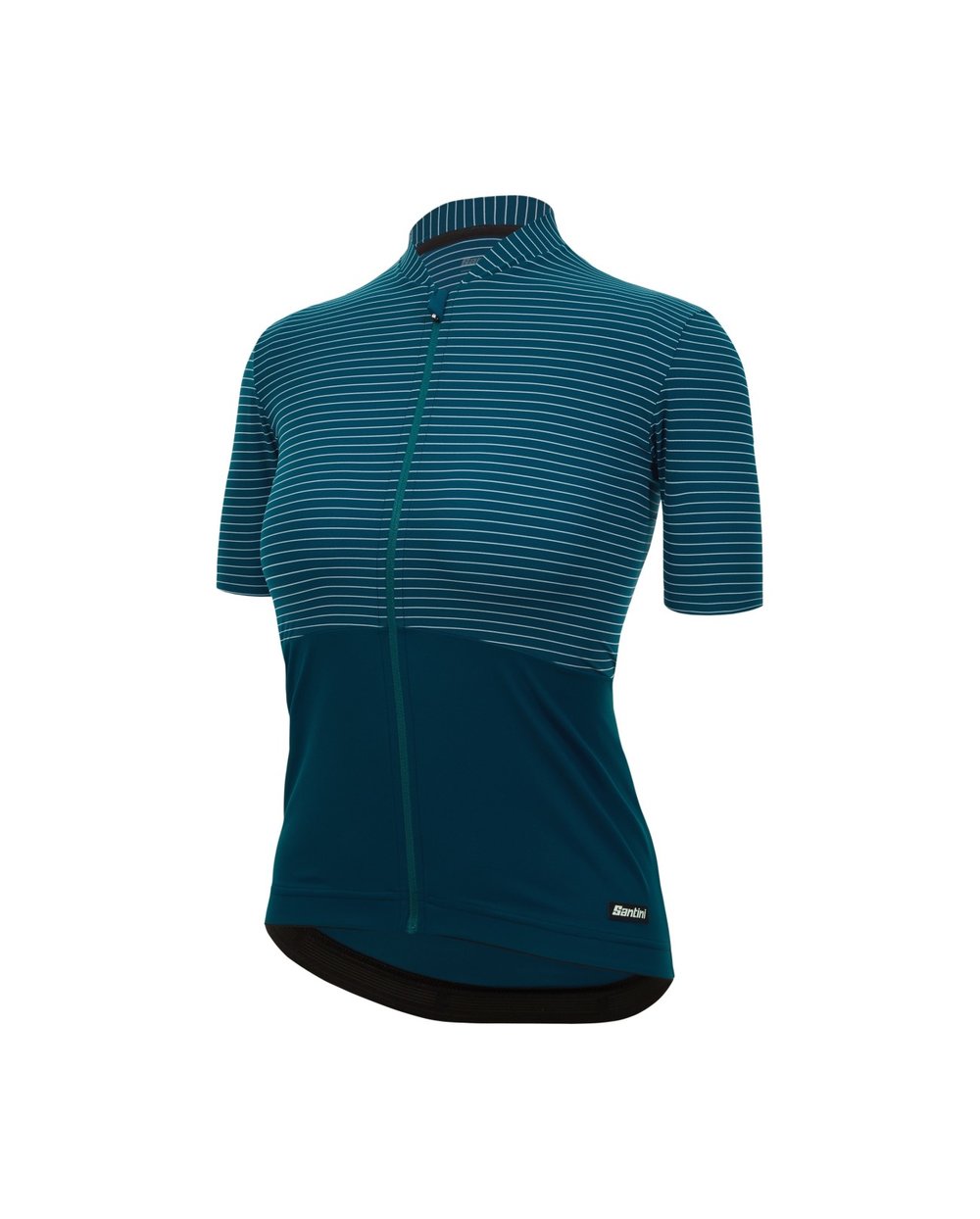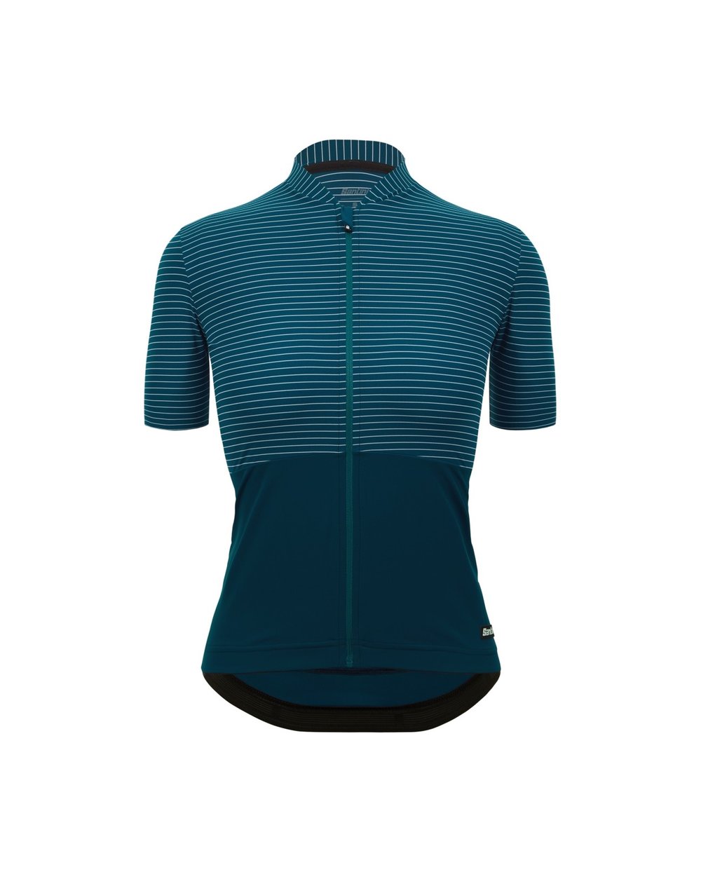 Η κομψή και άνετη γυναικεία φανέλα Santini Colore Riga, κατασκευασμένη από εξαιρετικά διαπνέοντα και γρήγορα στεγνώνοντα υλικά για μέγιστη άνεση, θα σας κρατήσει ψηλά σε κάθε ποδηλατοβόλτα. Το υψηλής ποιότητας, μαλακό τεχνικό ύφασμα προσαρμόζεται στο σώμα χωρίς να περιορίζει την κίνηση, ενώ επιπλέον φέρει ρίγες από ιταλικό ελαφρύ πολυαμίδιο στο πάνω μέρος και στα μανίκια. Ένα εσωτερικό πιαστράκι σιλικόνης στη μέση διατηρεί τη φανέλα στη θέση της σε όλες τις συνθήκες. Η τριπλή ενισχυμένη πίσω τσέπη μπορεί να αποθηκεύσει όλα τα απαραίτητα, ενώ οι αντανακλαστικές κουκίδες αυξάνουν την ορατότητά σας.