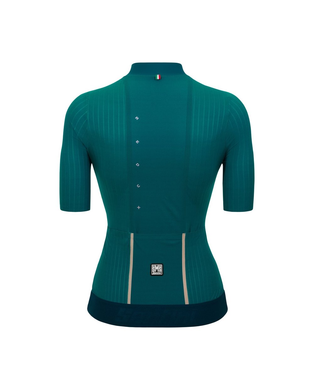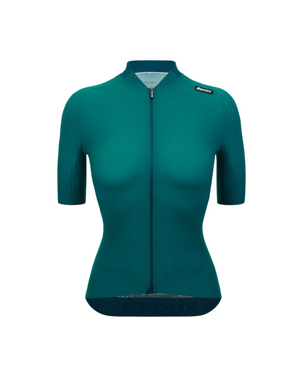 Η γυναικεία φανέλα Santini Redux Speed έχει σχεδιαστεί με γνώμονα την αεροδυναμική και την υψηλή λειτουργικότητα. Ακολουθεί το περίγραμμα του σώματός σας σαν δεύτερο δέρμα, εξασφαλίζοντας μέγιστη άνεση και εφαρμογή. Χάρη στη χρήση ειδικού υφάσματος στην πλάτη και τα μανίκια, αποκτάτε ένα ελαφρύ, γρήγορα στεγνό και ανθεκτικό στην υπεριώδη ακτινοβολία ρούχο. Επιπλέον, η αεροδυναμική κατασκευή μειώνει την αντίσταση του αέρα και το ελαστικό κορδόνι περίσφιξης στη μέση μαζί με τις αεροδυναμικές θερμοσυγκολλημένες μανσέτες στα μανίκια διατηρούν τη φανέλα σταθερά στη θέση της ακόμα και κατά τη διάρκεια έντονων πετάλιων. Η τριπλή πίσω τσέπη μπορεί να χωρέσει όλα τα απαραίτητα, ενώ διαθέτει και πολύχρωμη αντανακλαστική ταινία για αυξημένη ορατότητα.