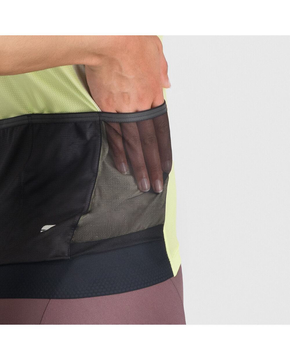 • Χάρη στην καλά κατανεμημένη ελαστικότητα και το ελαστικό στρίφωμα στο πίσω κάτω μέρος, η φανέλα διατηρεί τη θέση της ακόμη και σε επιθετική θέση οδήγησης - δεν προεξέχει, δεν τυλίγεται και δεν τεντώνεται σε βασικές περιοχές.