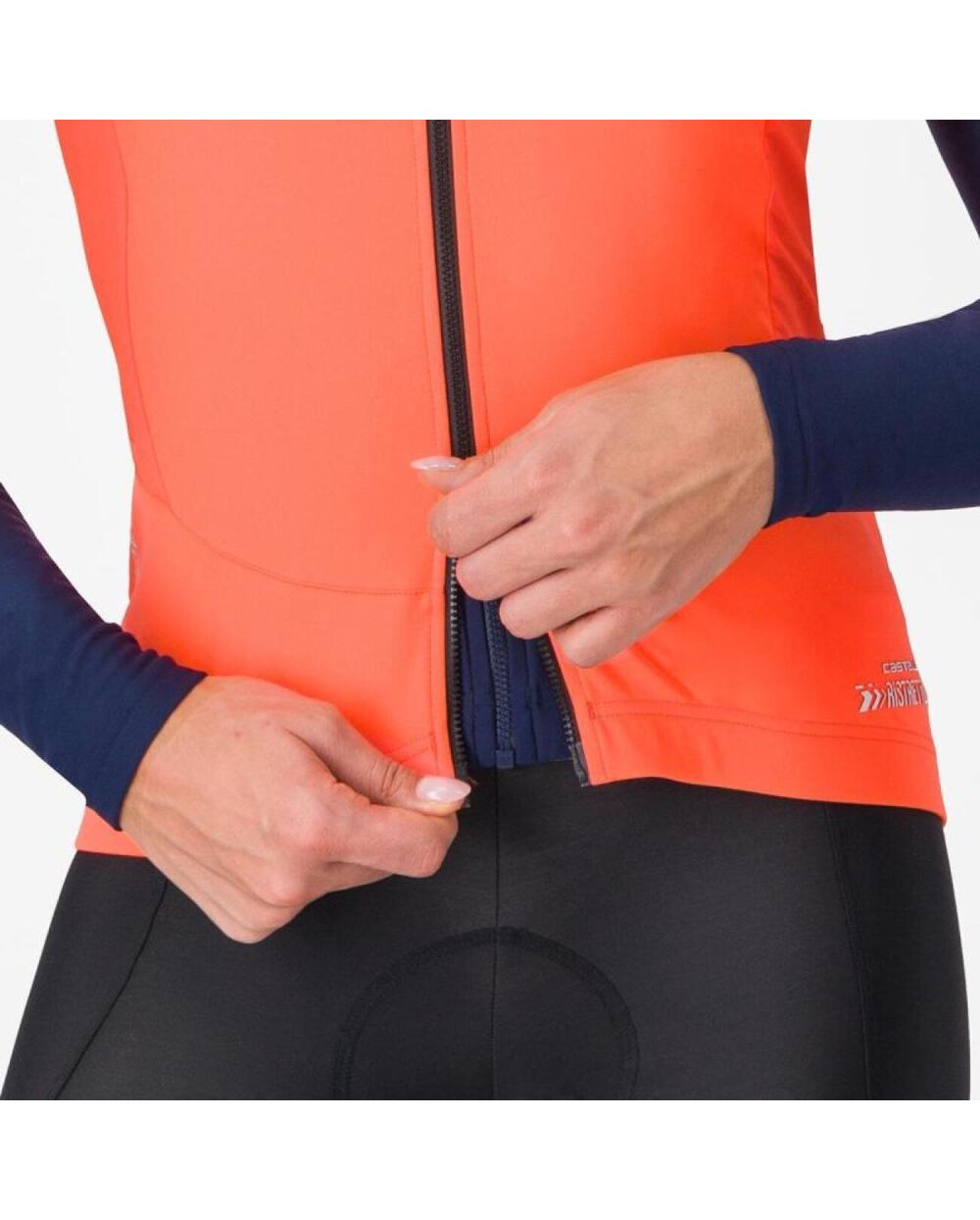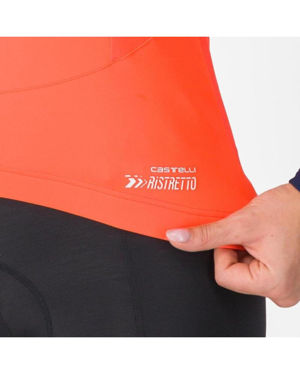 Τέλειο γιλέκο για κρύο καιρό. Η τεχνολογία Castelli Ristretto μονώνει ενώ επιτρέπει περιορισμένη ροή αέρα για να κρατά το μέσο σώμα σας στεγνό. Μεσαίου πάχους γιλέκο για χαμηλές θερμοκρασίες παρέχει μέτρια μόνωση με εξαιρετική αναπνοή. Τεχνολογία υφάσματος Castelli Ristretto Lite για απαράμιλλη αναπνοή, ζεστασιά και στεγνότητα με επεξεργασία DWR χωρίς PFAS. Ελαστική ελαστικότητα με ύφασμα στην πλάτη. Εύκολα συρόμενο φερμουάρ YKK® Vislon® με άνοιγμα πάνω και κάτω. 3 τσέπες με εσωτερική άκρη ασφαλείας. Ανακλαστική σωλήνωση στο κάτω μέρος της τσέπης για ορατότητα. Η Castelli συνεργάστηκε με τον καινοτόμο υλικό ITTTAI® για να δημιουργήσει ένα αποκλειστικό ύφασμα που συνδυάζει προηγμένη ελαστικότητα, διαπνοή και προστασία από το νερό χάρη στην τεχνογνωσία της ITTTAI® στον τομέα των μεμβρανών και της πλαστικοποίησης. 085 ανοιχτό μαύρο, 288 φωτεινό ροζ, 502 νυχτερινές σκιές Σύνθεση υλικού: Κύριο εξωτερικό υλικό 100% πολυεστέρας Κύριο εσωτερικό υλικό 70% πολυεστέρας 30% ελαστάνη Πίσω, εσωτερικός γιακάς 78% πολυεστέρας 22% ελαστάνη Πίσω κάτω μέρος 70% πολυαμίδιο 30% ελαστάν είναι φτιαγμένο για να ζεσταθεί σε όλο το βλέφαρο Είναι το πιο ζεστό μας γιλέκο, αλλά χάρη στην εξαιρετική του αναπνοή καλύπτει ένα ευρύ φάσμα θερμοκρασιών. Η τεχνολογία του υλικού Castelli Ristretto το καθιστά τόσο ευέλικτο. Το υλικό είναι σχεδιασμένο με δυνατότητα αναπνοής, επομένως είναι αντιανεμικό, αλλά αφήνει πολύ λίγο αέρα, ο οποίος απομακρύνει περισσότερο ιδρώτα και σας κρατά στεγνό. Το μπροστινό μέρος είναι κατασκευασμένο από μια μεσαίου βάρους έκδοση του υλικού Ristretto, ενώ το πίσω μέρος είναι κατασκευασμένο από ελαστικό ύφασμα για ακόμα μεγαλύτερη διαπνοή. Θα μείνετε στεγνοί, πράγμα που σημαίνει ότι μπορείτε να ζεσταθείτε ακόμα και με ένα πιο λεπτό γιλέκο. Μπορείτε να ρυθμίσετε τον αερισμό με το διπλό φερμουάρ YKK® Vislon®. Τρεις ευρύχωρες πίσω τσέπες μπορούν να χωρέσουν τον εξοπλισμό σας. Ο γιακάς είναι αρκετά ψηλός ώστε να μπορείτε να αφήσετε το μαντήλι στο σπίτι.