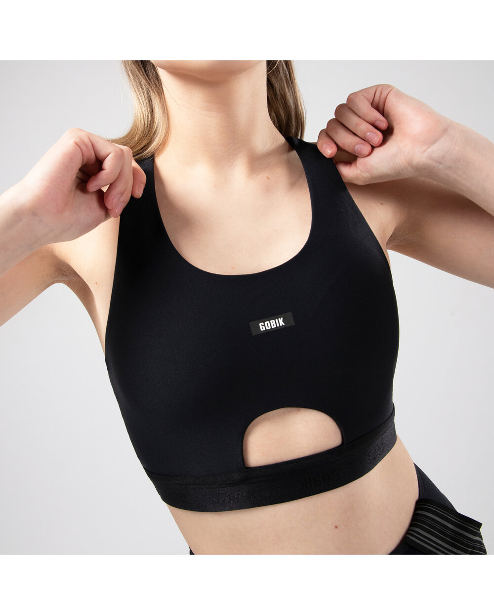 Με λειτουργικό και μινιμαλιστικό σχεδιασμό, μειώνει τον αριθμό των ραφών στο ελάχιστο - μόνο δύο μπροστινές ραφές - για μέγιστη άνεση κατά τη διάρκεια μεγάλων προπονήσεων. Το πίσω μέρος περιλαμβάνει ιμάντες ώμου με τεχνολογία σύνδεσης και μικροδιατρήσεις λέιζερ με το λογότυπο Gobik, που βελτιώνουν τον αερισμό και απομακρύνουν αποτελεσματικά τον ιδρώτα.