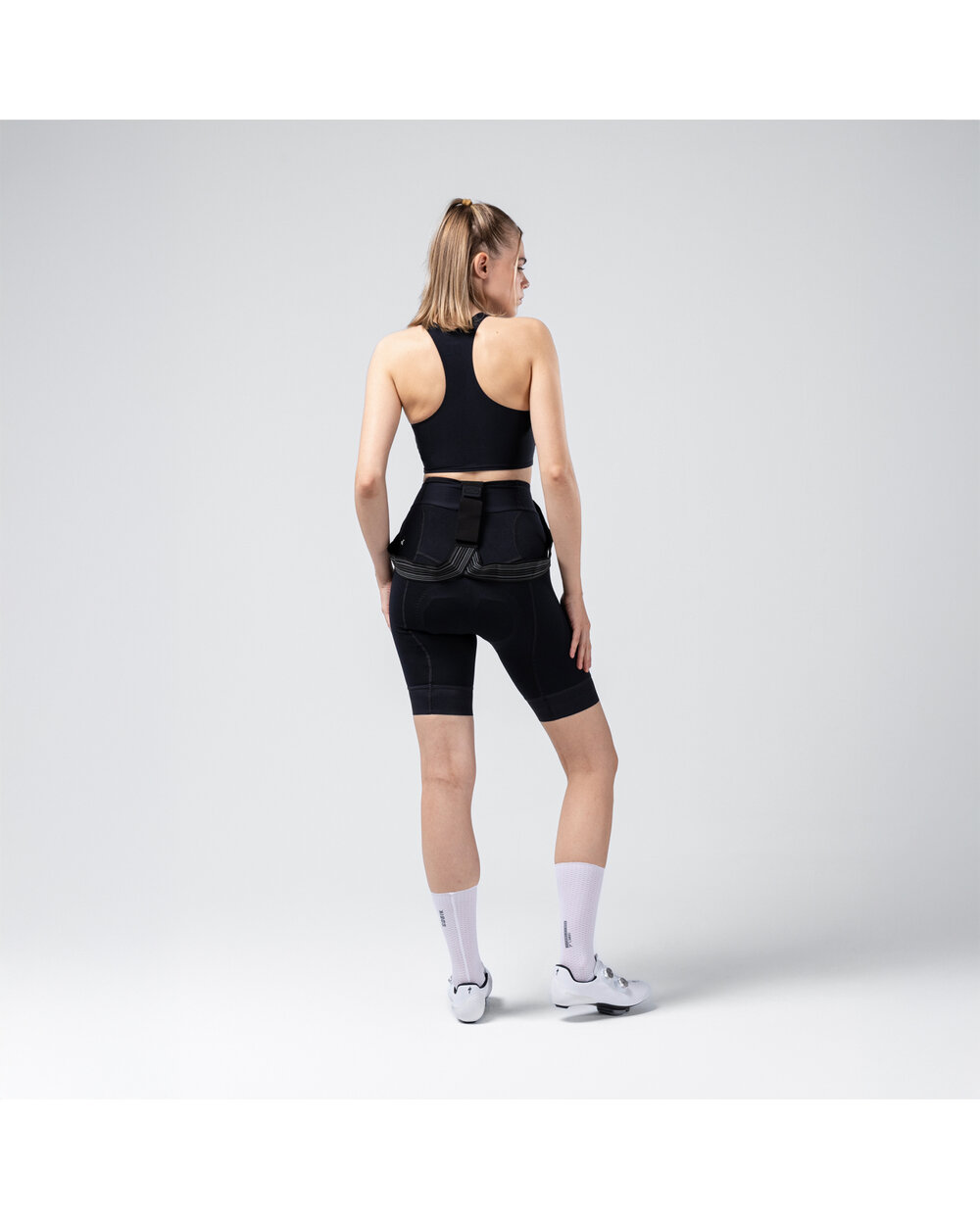 Η τέλεια εφαρμογή εξασφαλίζεται από την ελαστική ταινία ζακάρ στο κάτω μέρος, η οποία παρέχει πρόσθετη υποστήριξη και τονίζει τη γυναικεία σιλουέτα. Το σουτιέν διαθέτει επίσης μια μπροστινή οπή για τον αισθητήρα καρδιακών παλμών, επιτρέποντας την ελεύθερη κίνηση και την ακριβή μέτρηση της απόδοσης. Για μεγαλύτερη ευελιξία, περιλαμβάνονται αφαιρούμενα ένθετα, τα οποία επιτρέπουν την προσαρμογή σύμφωνα με τις προτιμήσεις του ποδηλάτη.