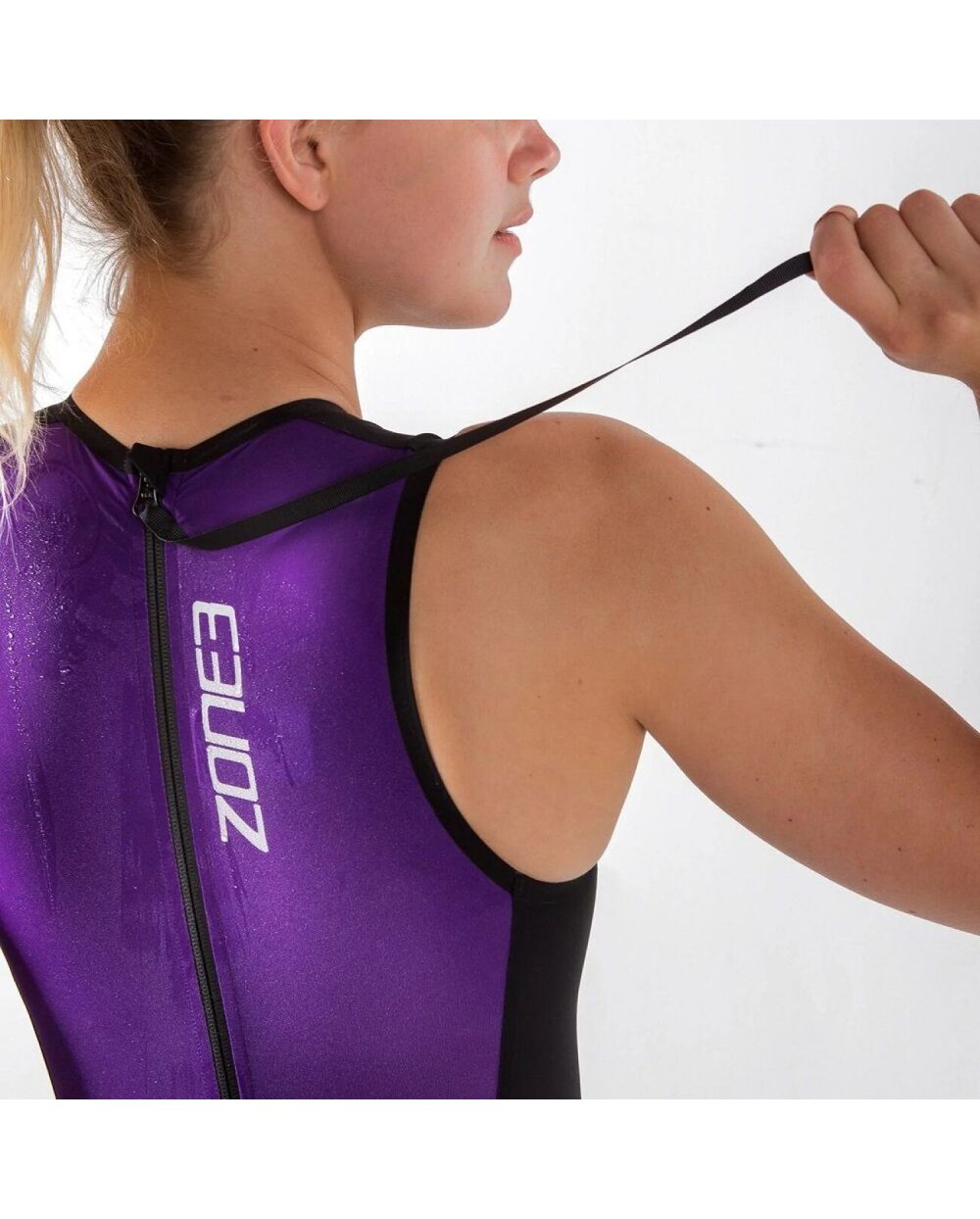 Το Zone3 Streamline Sleeveless Swimskin είναι ένα γυναικείο αμάνικο μαγιό σχεδιασμένο για αθλητές και κολυμβητές που θέλουν να βελτιώσουν την υδροδυναμική και την ταχύτητά τους όταν κολυμπούν χωρίς στολή. Είναι ένα ελαφρύ και συμπιεστικό δέρμα κολύμβησης που φοριέται πάνω από κιτ αγώνων ή κορδόνια και συμβάλλει στη μείωση της αντοχής στο νερό, προάγοντας την αποτελεσματικότερη και ταχύτερη κολύμβηση. Το κοστούμι είναι κατασκευασμένο από ελαφρύ ιταλικό ύφασμα με υψηλή συμπίεση και περιέχει υδρόφοβα (υδατοαπωθητικά) στρώματα που ελαχιστοποιούν την απορρόφηση του νερού και διατηρούν το σχήμα κατά την εκτέλεση. Οι ραφές είναι πλήρως συγκολλημένες και το υλικό καλύπτεται με νανο-επιφανειακή επεξεργασία, χάρη στην οποία η άνεση χρήσης είναι υψηλή και η αντοχή στο νερό χαμηλή. Το πίσω φερμουάρ διευκολύνει το ανέβασμα και το κατέβασμα, ενώ ένα πιο φωτεινό πίσω πλαίσιο βελτιώνει την ορατότητα στο νερό.