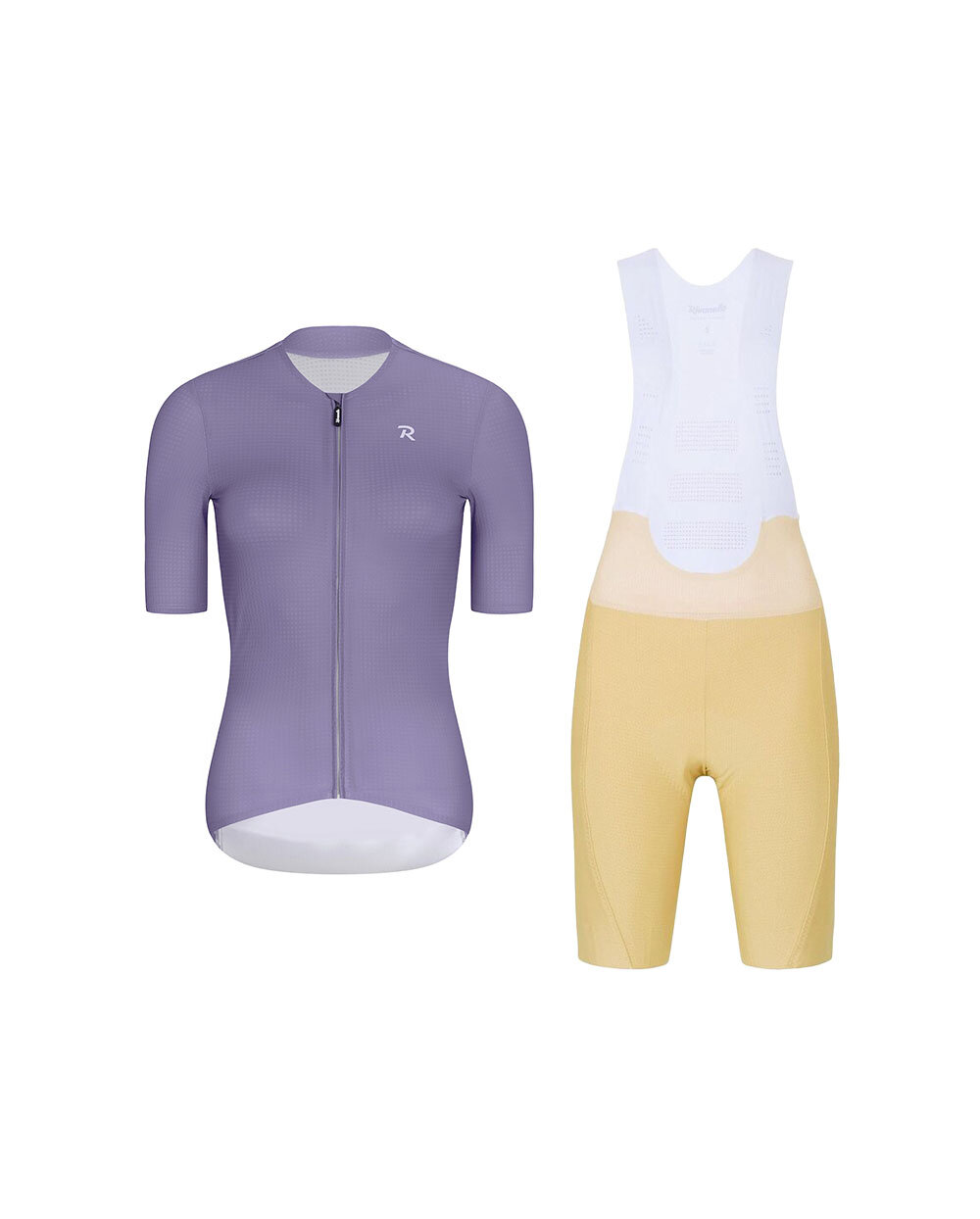 Το γυναικείο σετ ποδηλασίας Rivanelle είναι η ιδανική επιλογή για ποδηλάτισσες που αναζητούν τον συνδυασμό απόδοσης, άνεσης και μοντέρνου στυλ. Ο συνδυασμός της μπλούζας με κοντά μανίκια ELEVATE σε μοβ χρώμα και του σορτς με τιράντες NOVEL PRO σε μπεζ χρώμα έχει σχεδιαστεί για εντατικές προπονήσεις αλλά και για πολλές ώρες στη σέλα.