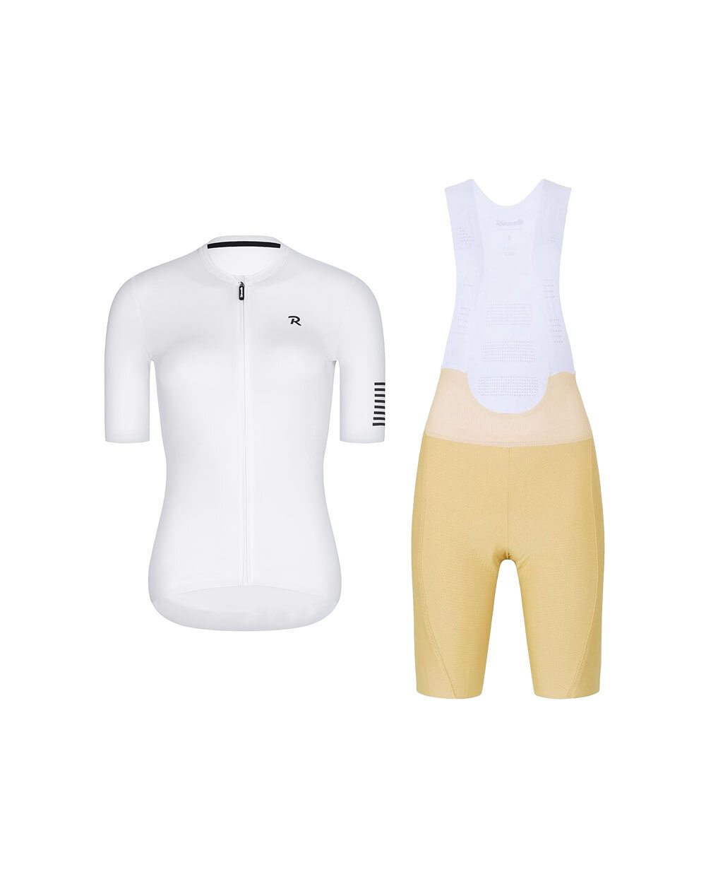 Το γυναικείο σετ ποδηλασίας Rivanelle VICTORIOUS LADY / NOVEL PRO αποτελεί την ιδανική επιλογή για τις ποδηλάτισσες που αναζητούν τον συνδυασμό στυλ, άνεσης και υψηλής απόδοσης. Ο συνδυασμός ενός κομψού μπλουζιού με κοντά μανίκια σε λευκό χρώμα και ενός υψηλής ποιότητας σορτς με τιράντες σε μπεζ χρώμα δημιουργεί ένα αρμονικό σύνολο κατάλληλο για προπονήσεις, μεγάλες διαδρομές αλλά και αθλητικές προκλήσεις.