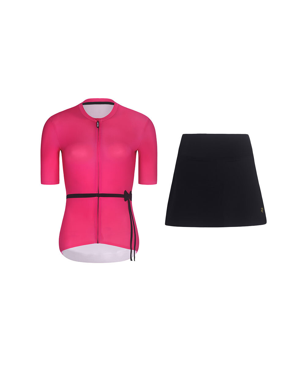 Το γυναικείο σετ ποδηλασίας Rivanelle συνδυάζει στυλ, άνεση και λειτουργικότητα σε ένα τέλεια συντονισμένο σύνολο για ποδηλασία. Η ροζ ποδηλατική φανέλα LOVELY κερδίζει με την πρώτη ματιά χάρη στο θηλυκό της σχέδιο, το χαριτωμένο φιόγκο στο πλάι και τις επιμηκυμένες κορδέλες, που της προσδίδουν μια πρωτότυπη και κομψή εμφάνιση. Το ελαφρύ, αναπνεύσιμο και ελαστικό υλικό είναι ευχάριστο στο σώμα, προσαρμόζεται όμορφα στη σιλουέτα και ταυτόχρονα λειαίνει απαλά τις γραμμές της. Για άνεση κατά την οδήγηση φροντίζει το φερμουάρ σε όλο το μήκος μπροστά με προστασία για το λαιμό, η πρακτική τριπλή πίσω τσέπη με τσέπη ασφαλείας με φερμουάρ και το χωρίς ραφές στρίφωμα με αντιολισθητική εκτύπωση στο πίσω μέρος.