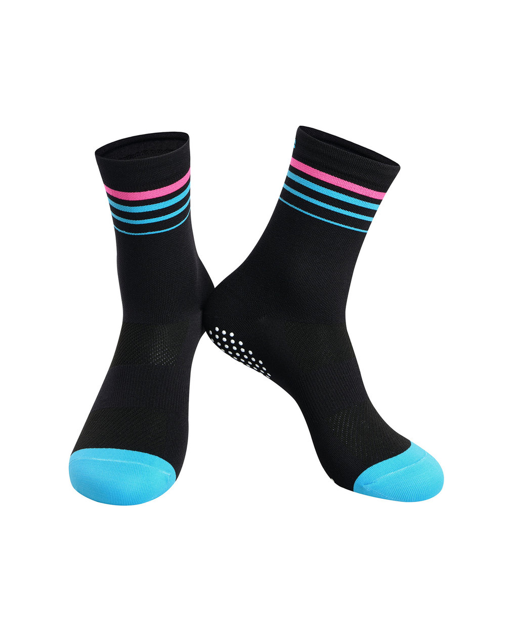 Κάλτσες συμπίεσης για ποδήλατα από ανθεκτικά υλικά που απορροφούν την υγρασία. Οι κάλτσες έχουν υπέροχο σχέδιο με ρίγες και ζώνη σιλικόνης που εμποδίζει την ολίσθηση κατά τη διάρκεια της κίνησης. Κατάλληλες και για άλλα αθλήματα.
